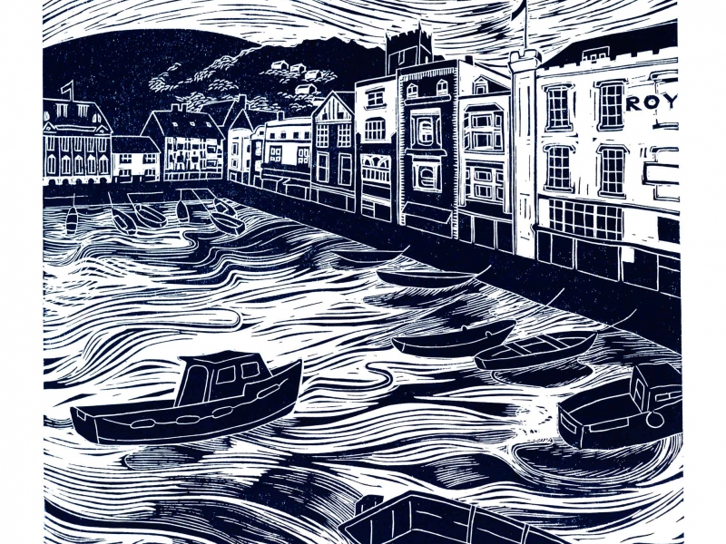 As a huge fan of the work of Tirzah Garwood (wife of Eric Ravilious), it is joyous to see traditional hand print making still holding its own, as seen the fabulous lino cuts of Kim Carlow. She really captures the movement of boats on choppy seas coming back to safe harbour.