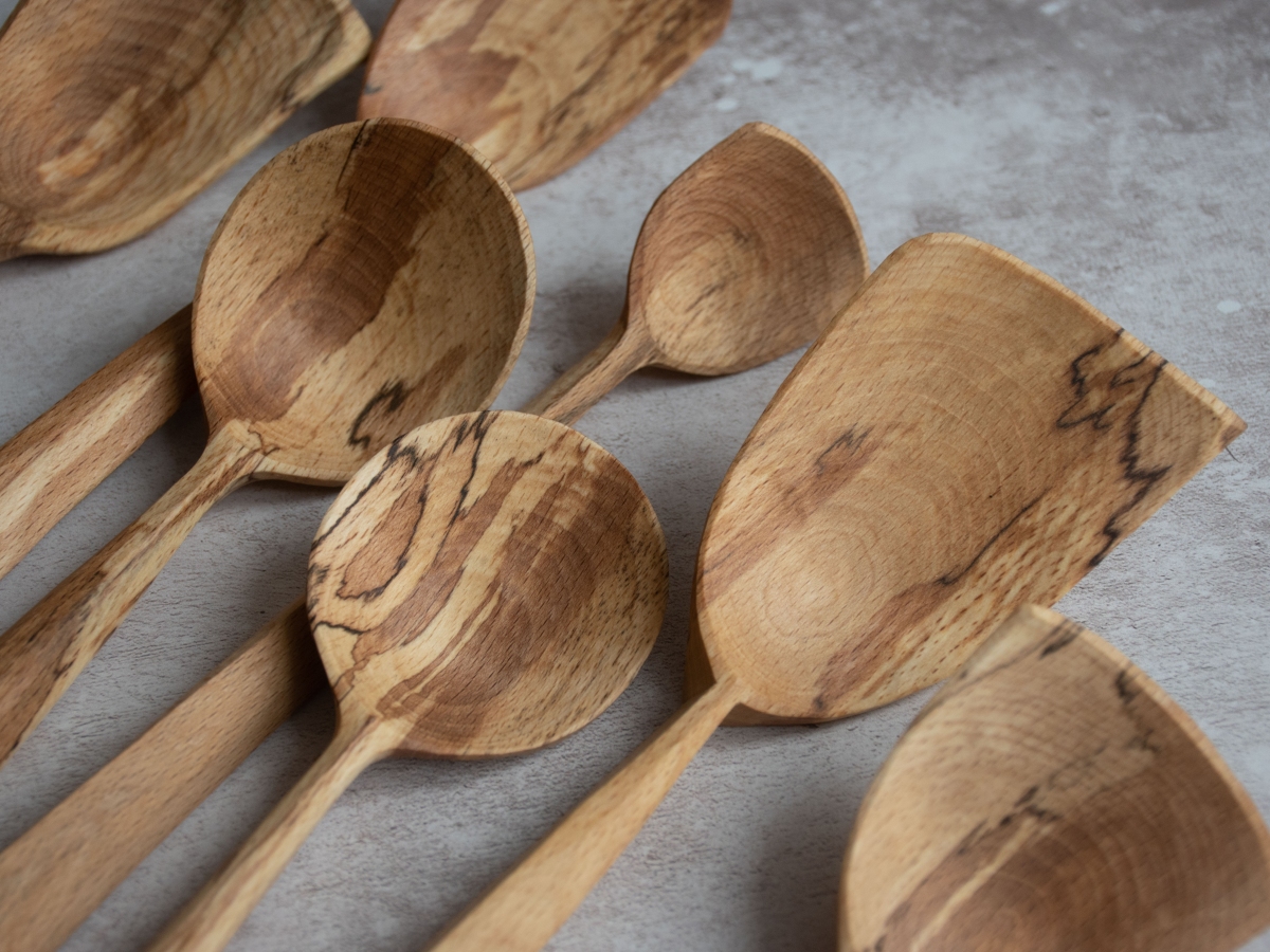 Alex’s work is rooted in traditional green woodworking, using local woods, hand tools, and quiet precision to carve spoons, bowls, and shrink pots that celebrate nature’s beauty, function, and flow.