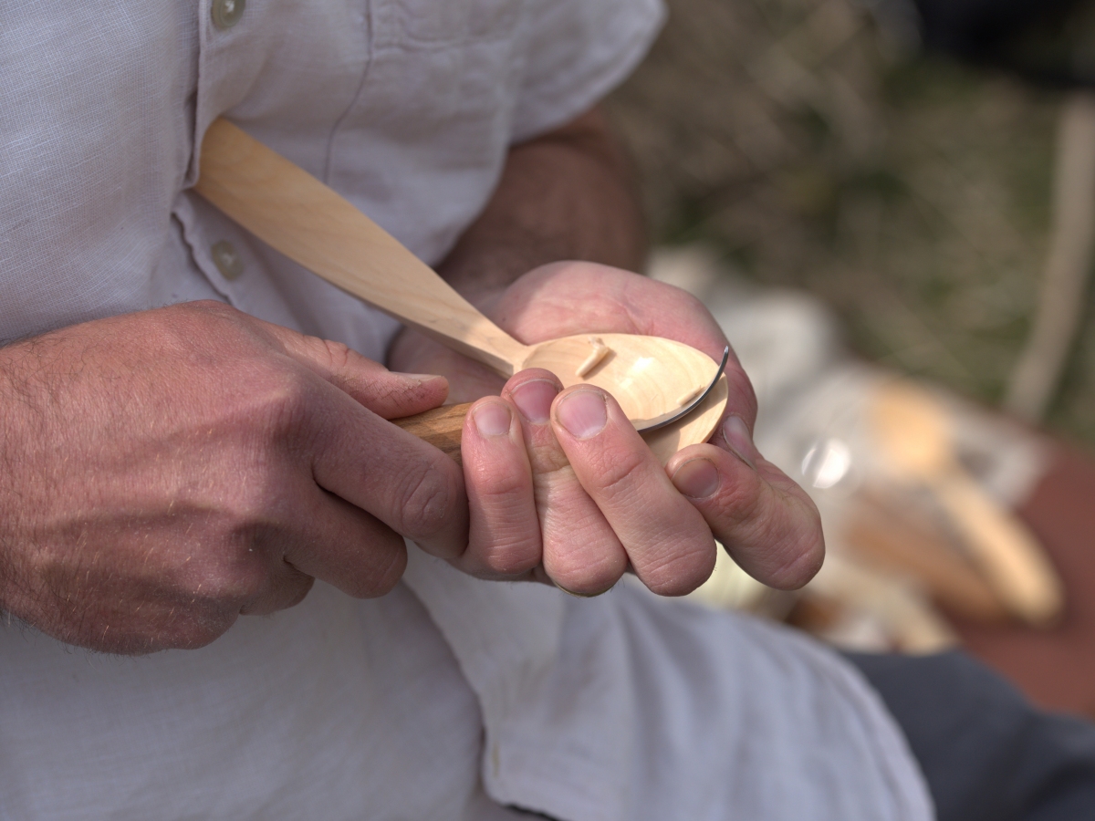 Alex Finberg is an award-winning woodcarver, author, and workshop tutor based in South Devon. He creates handcarved spoons, bowls, and shrink pots from locally sourced green wood and teaches the craft through workshops, online masterclasses, and community wellbeing programmes with his social enterprise, Woodcrafters CIC.
