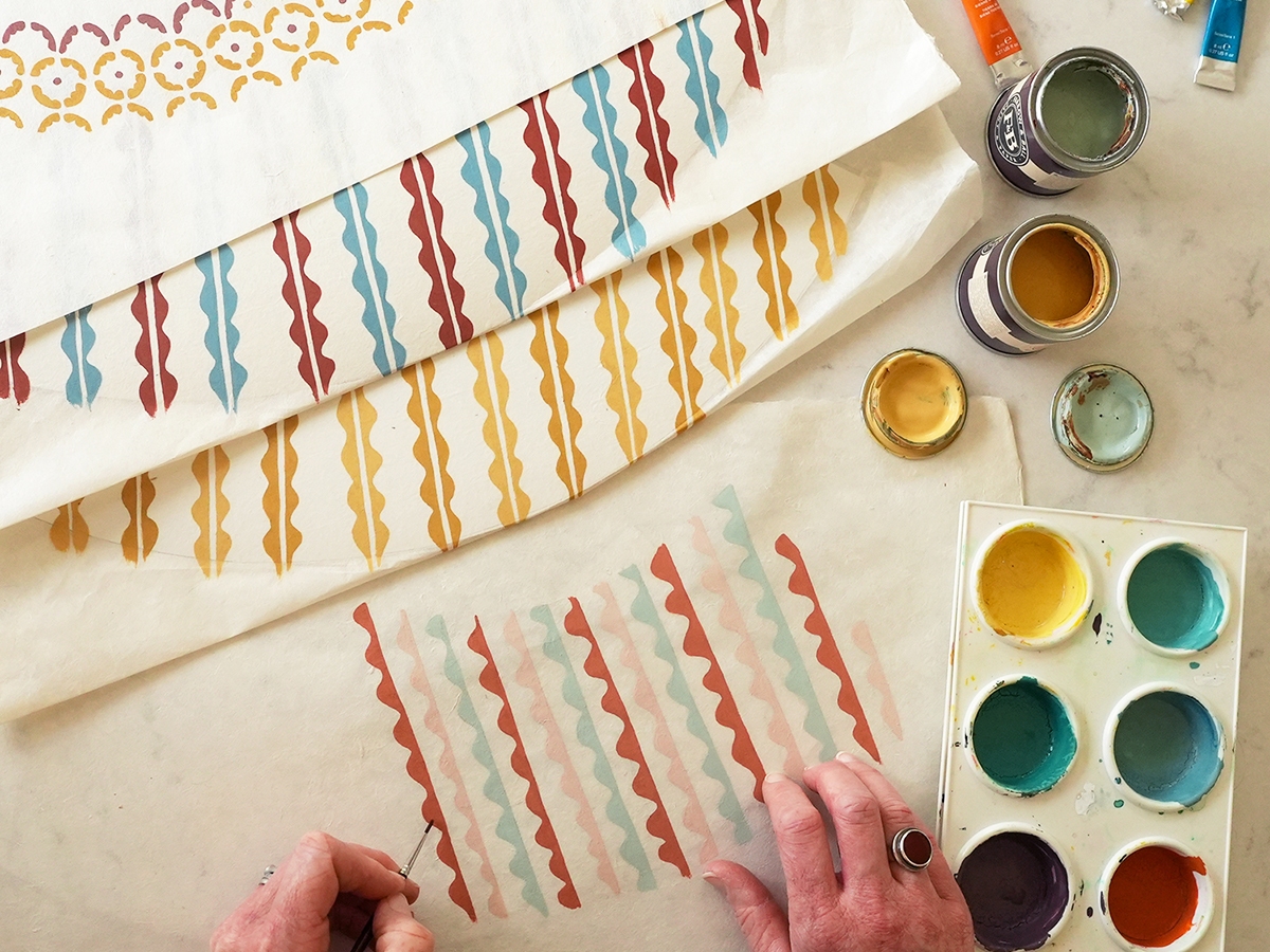 Anna trained as a textile designer at Farnham college of art where she gained a BA hons degree in printed textiles. She continued to work for many years within the fashion and interior industry before moving to Devon where she now has her studio. Anna runs workshops sharing her knowledge of repeat pattern and lampshade making.