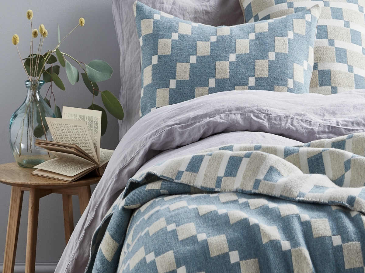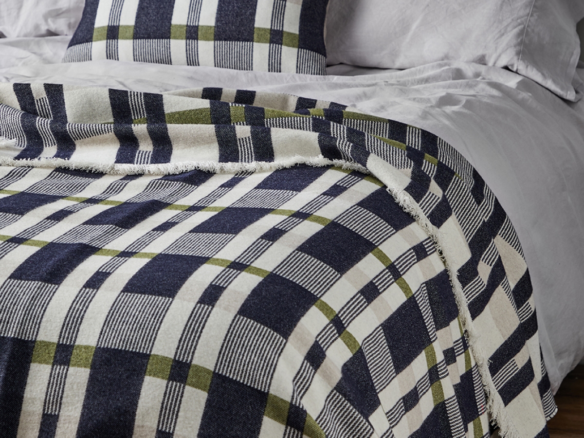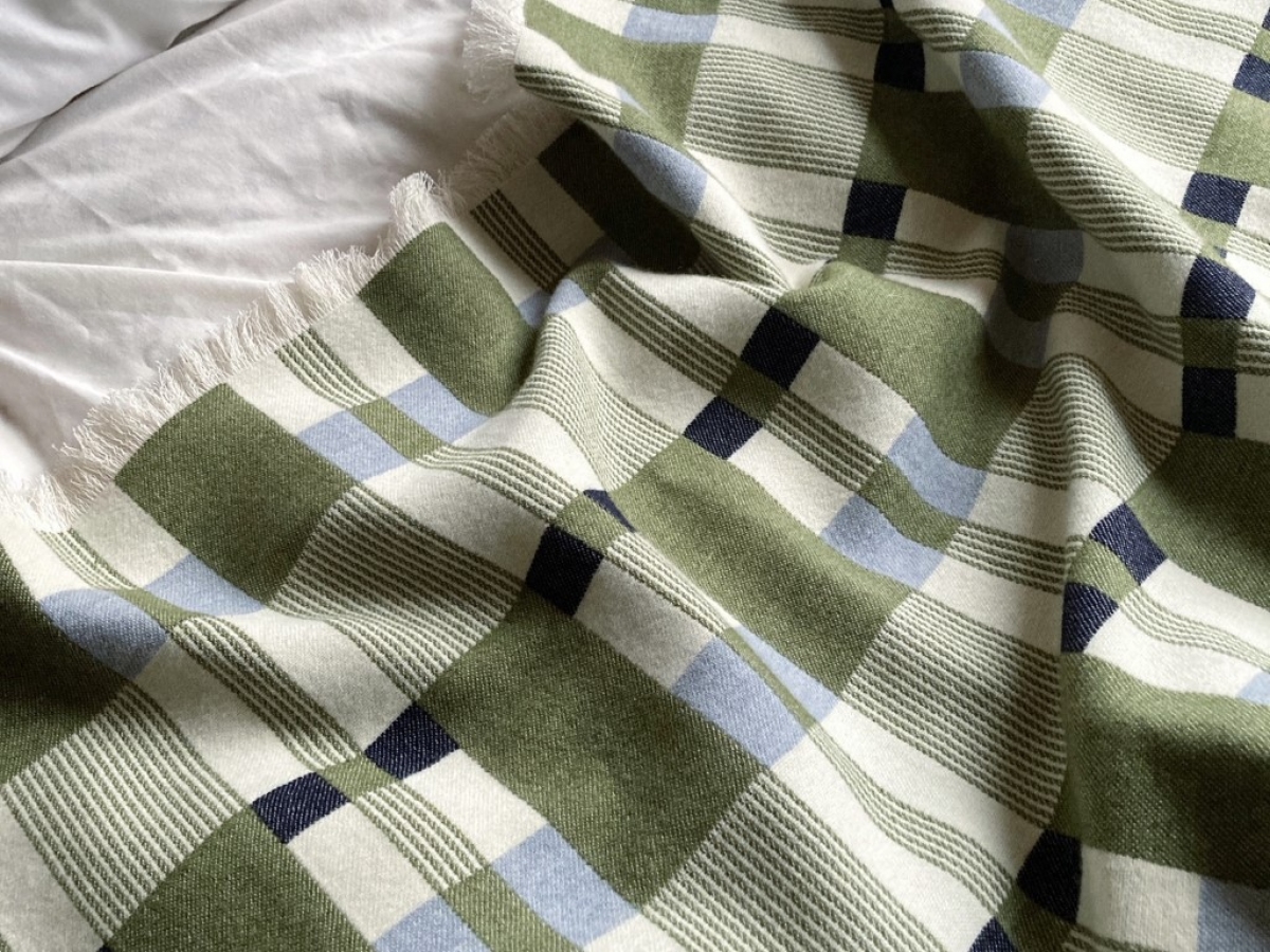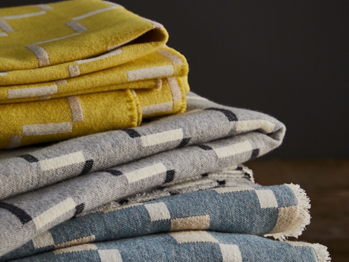 I am primarily a weaver based in West Yorkshire. I design contemporary woven textiles for the home and use local mills in the North West of England to weave small runs of merino wool cloth for me which is then returned to the studio to be cut and made into blankets and cushions.