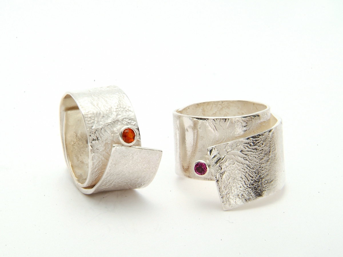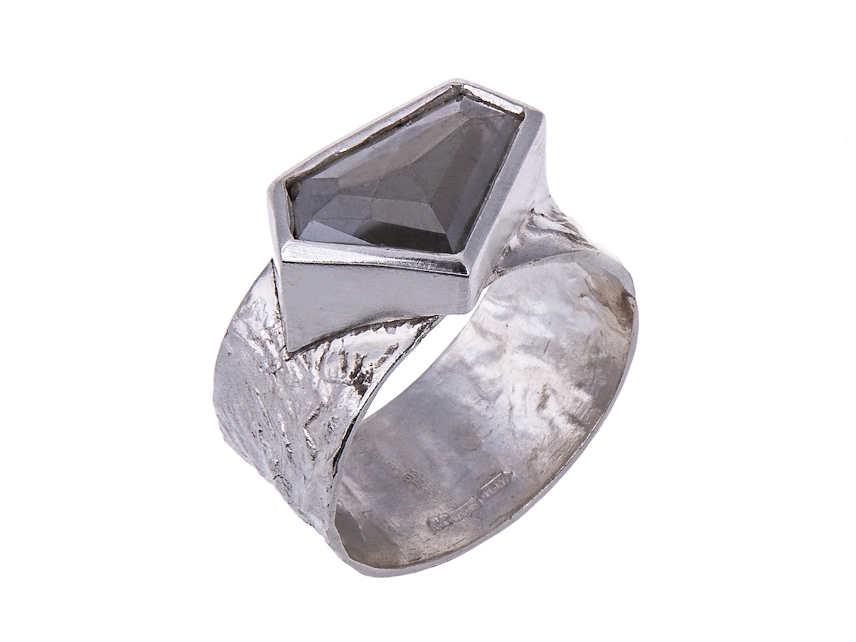 The asymmetry that is found within the landscape of the surrounding coastline, the erosion that naturally takes place, all influence her designs alongside the carefully selected gemstones that accompany them.