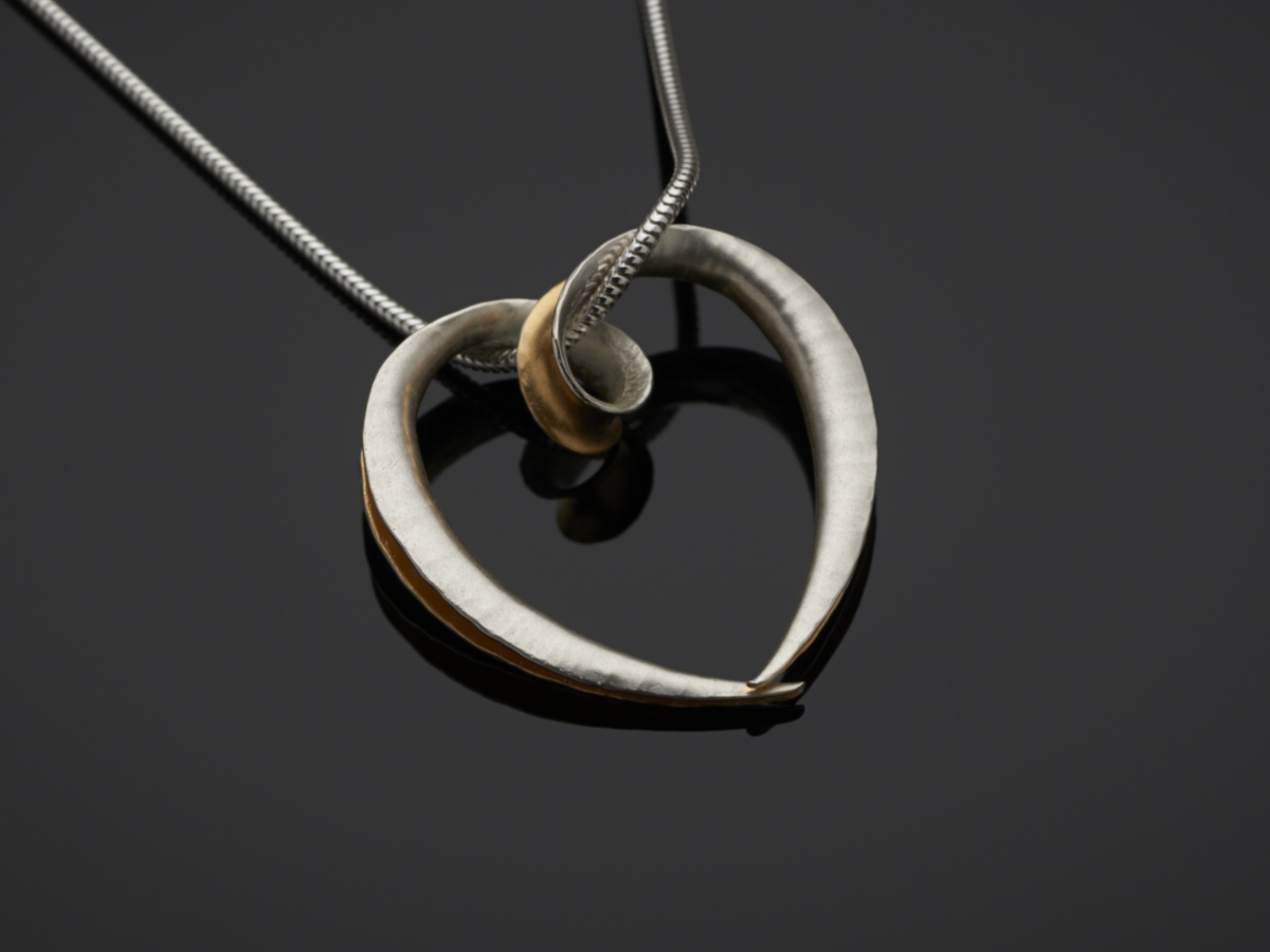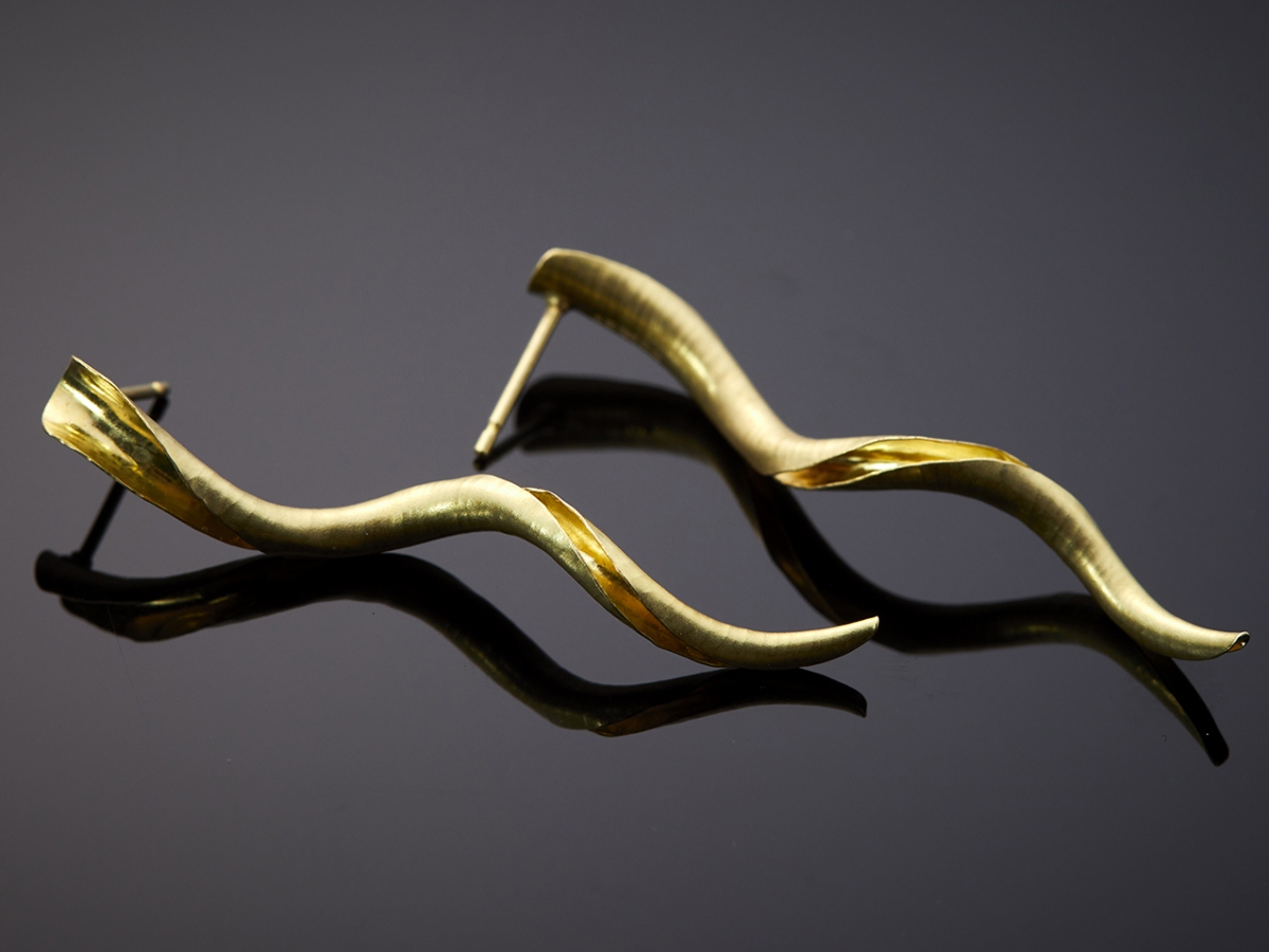 My work is made from recycled silver (mostly sterling, with some Britannia and recently, some 18 carat gold). Some of it is wholly or partly plated with yellow gold. All has a satin-matte finish. I have recently started to incorporate 18 carat gold and precious stones in my designs.