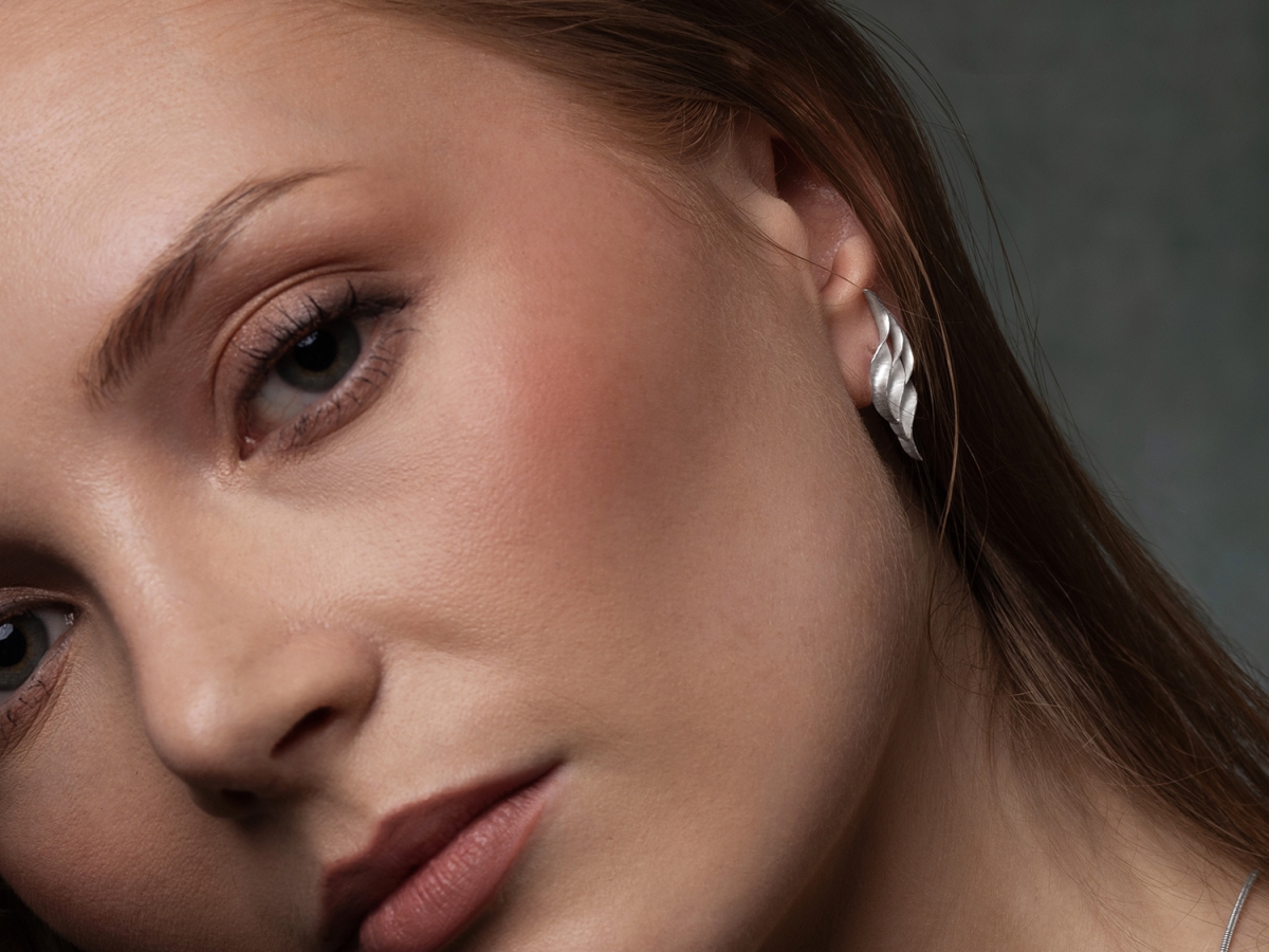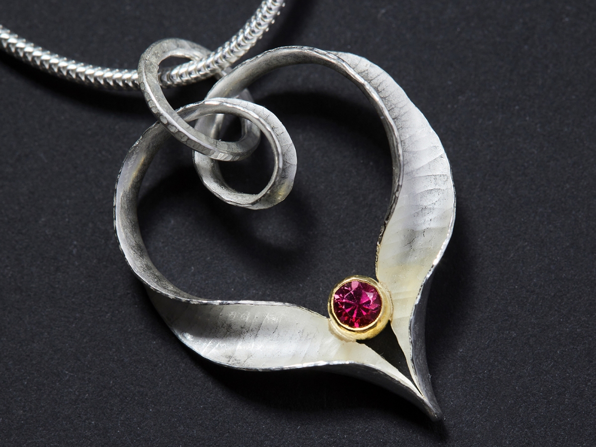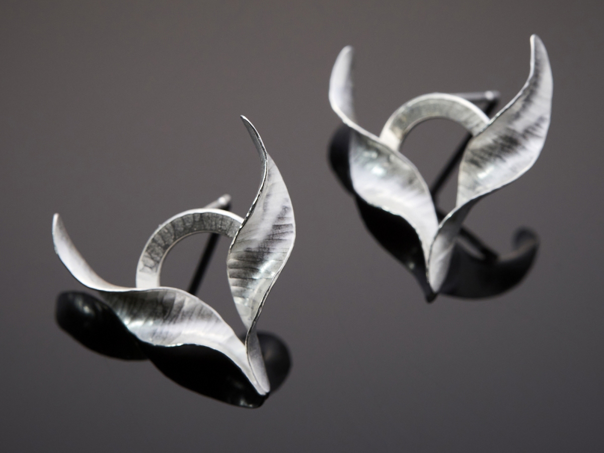 I make handmade (mainly) silver jewellery. All my work is made by the technique of anticlastic raising, a hand-hammering technique by means of which flat metal sheet is converted into three-dimensional forms which curl and twist. Because the metal is bent simultaneously through two opposing curves the structures are strong in spite of their lightness.