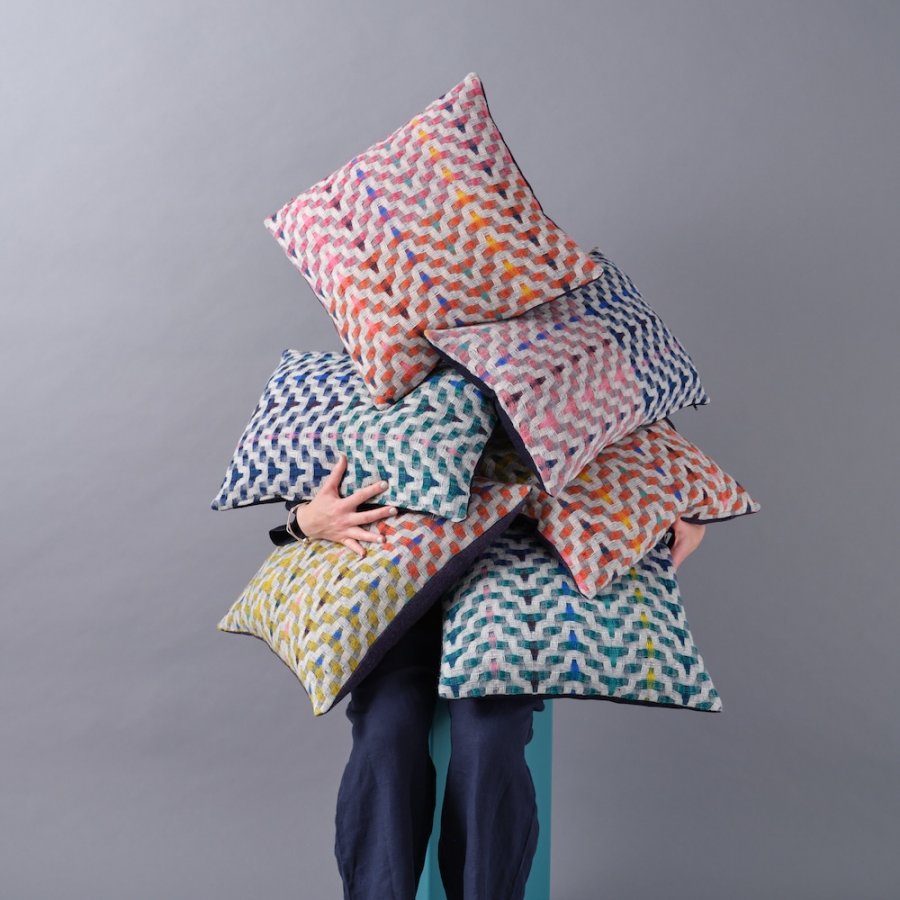 Her work is distinguished by a meticulous process of hand-weaving and material exploration. The Greenwich Collection, her debut range of throws, cushions and windings artwork, are inspired by Sonia Delaunay’s colour combinations and abstract geometric compositions. Each of Bonnie’s designs aims to evoke joy and connection, becoming a treasured object within the home.