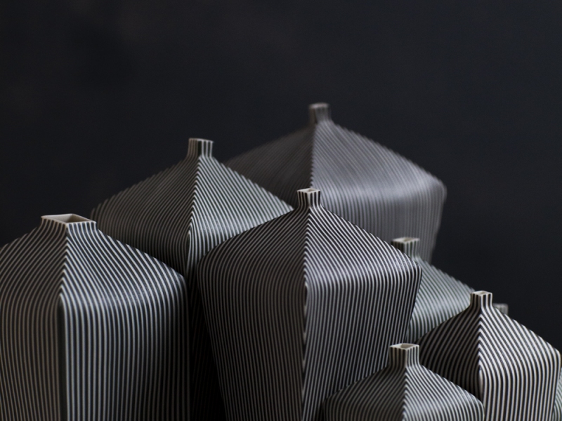 The meticulousness of Justine’s work appeals to me, and I really appreciate the many hours she spends with masking tape and a scalpel to decorate her pieces.