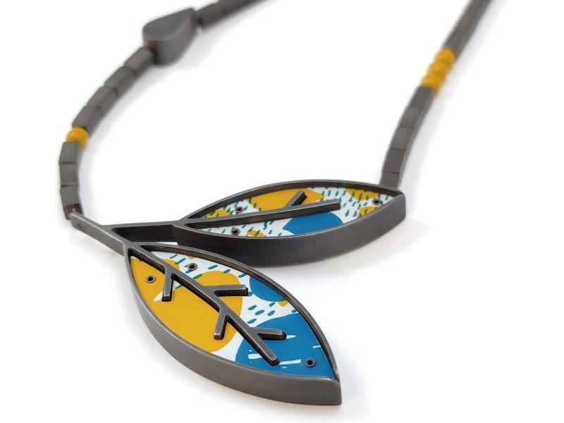 I simply adore the use of screen print to decorate the surface of Lindsey's her work, and the use of retro colours and shapes to create truly unique jewellery.
