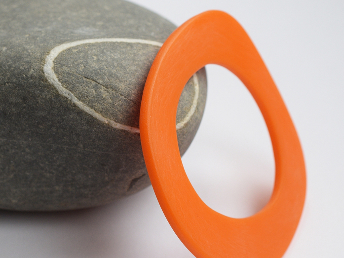 Bronwen Gwillim makes bold, one-off pieces of statement jewellery from waste plastic that she collects from the beach where she lives in Pembrokeshire. She uses colours, textures and forms inspired by the natural environment: she plays on the edges where nature/ industry, treasured/discarded meet. Bright colours live alongside rounded shapes and surfaces that are weathered and worn and she brings in recycled silver to further confuse notions of preciousness.