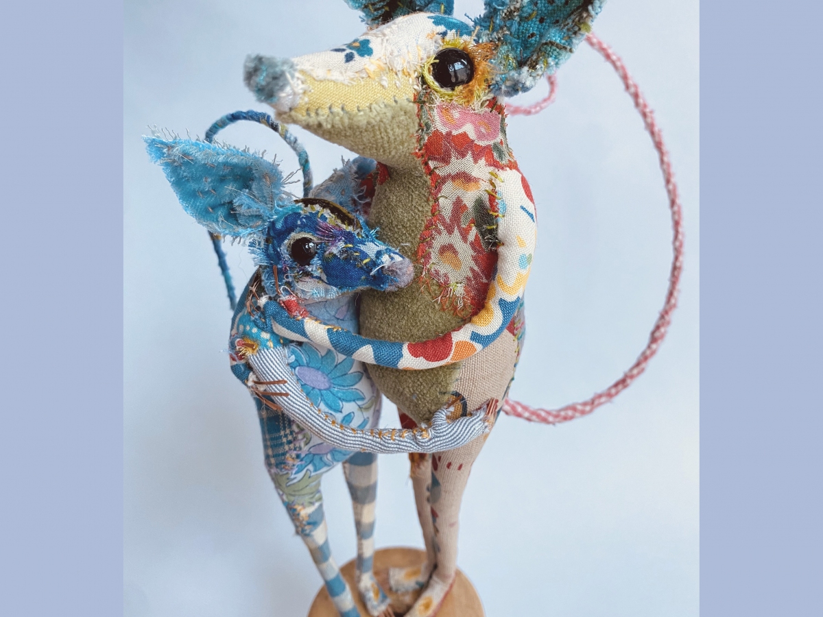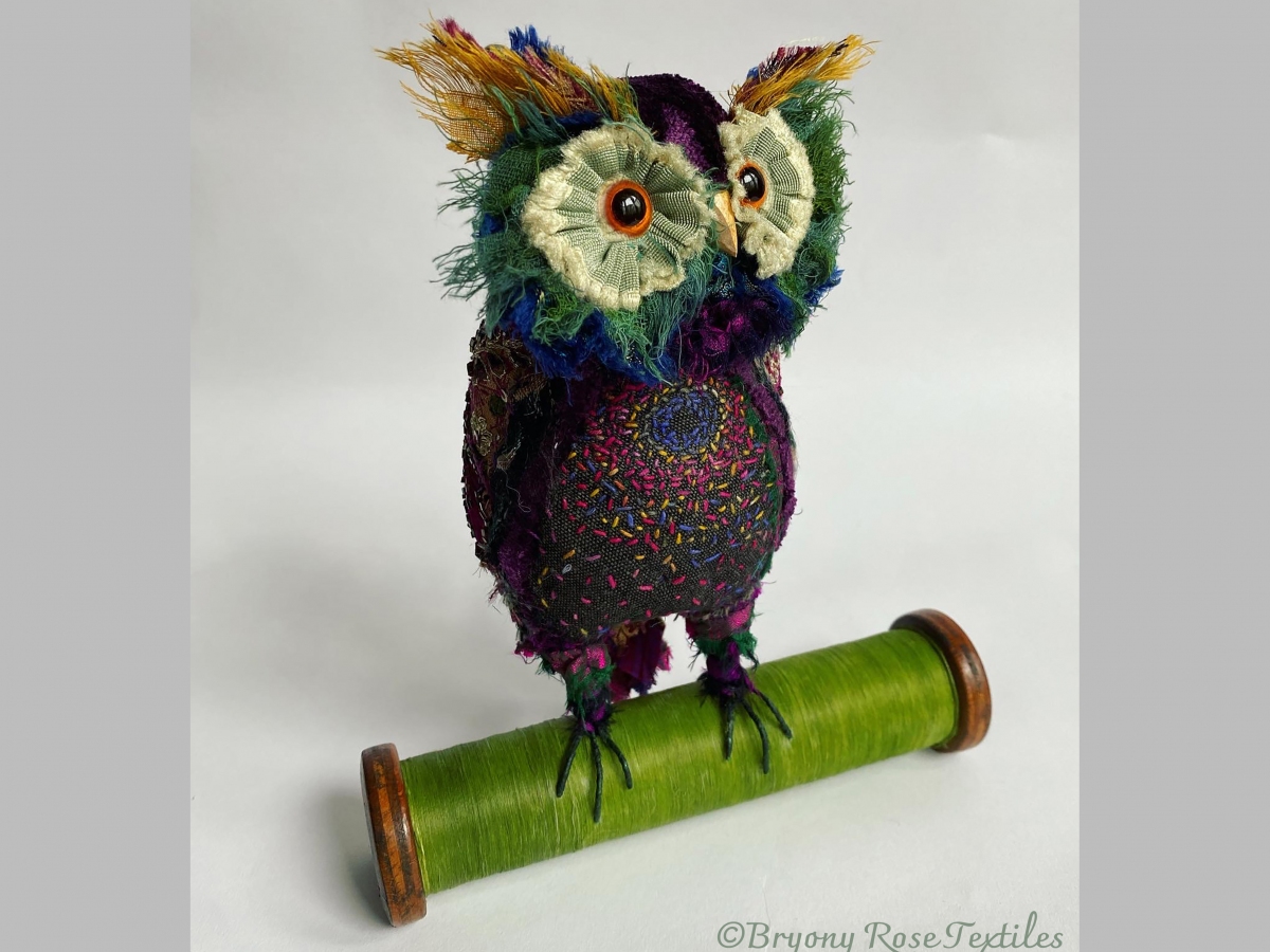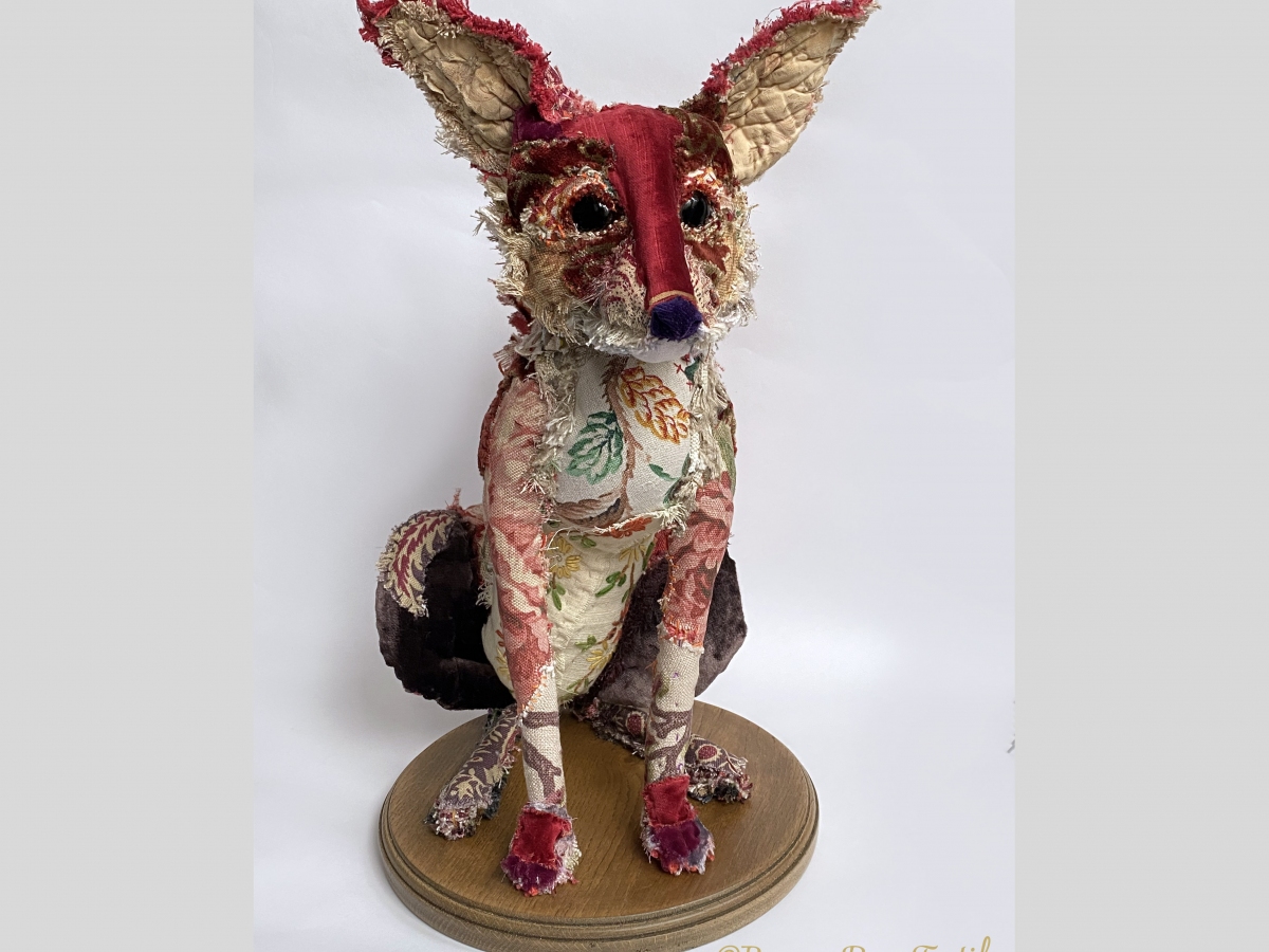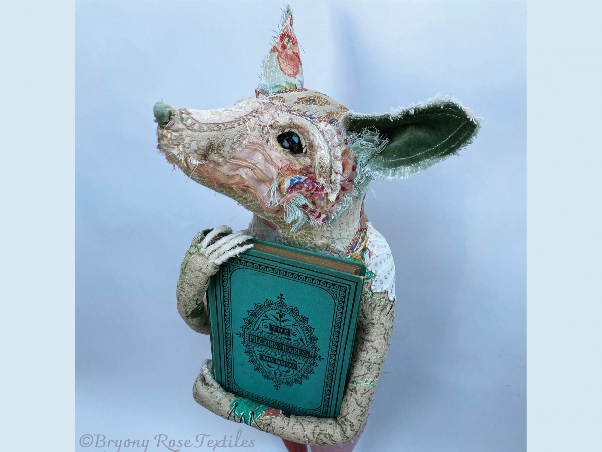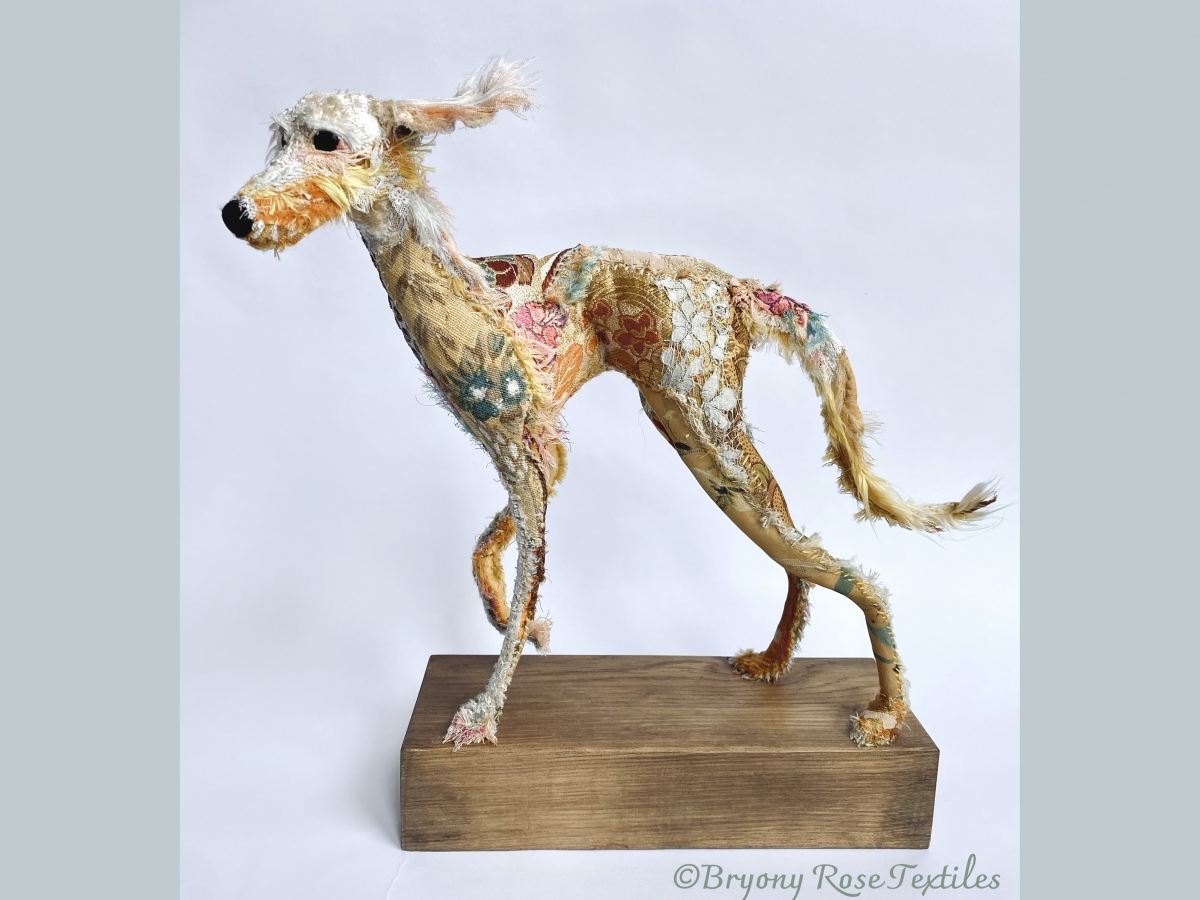 Bryony’s work looks to capture a sense of narrative. The animals she creates are vehicles for expression, aiming to capture personality and character over realism. The fabrics she chooses are not only a paint palette of colour and texture, but carry the stories of the lives it has touched before.