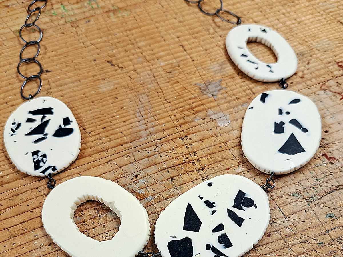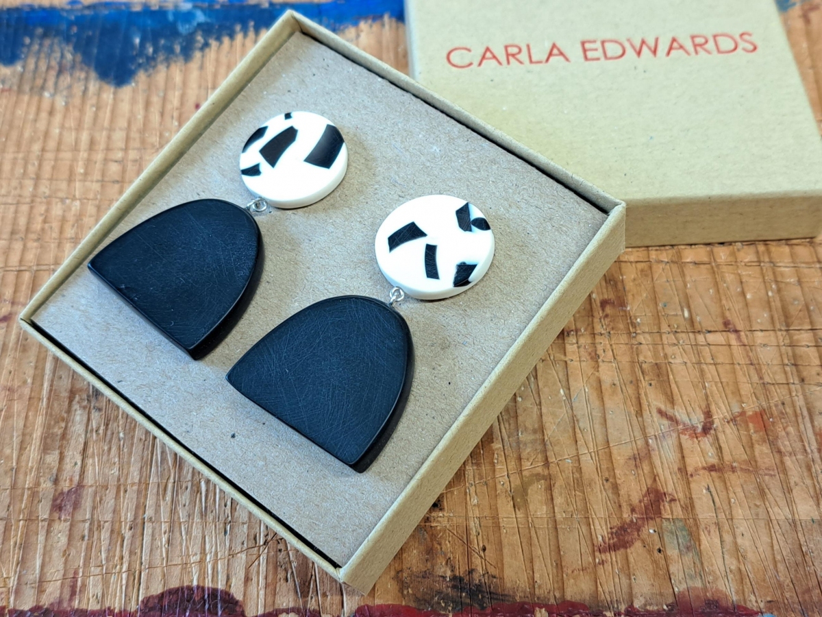 Carla makes colourful resin and silver jewellery from her workshop in Edinburgh.