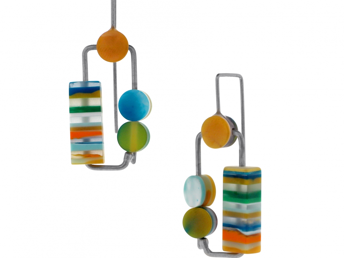 Bold and bright coastal inspired jewellery. Hand carved from surplus resin (known as Surfite), a by-product of custom surfboard production. Precious metal elements add structure and form to the pieces.