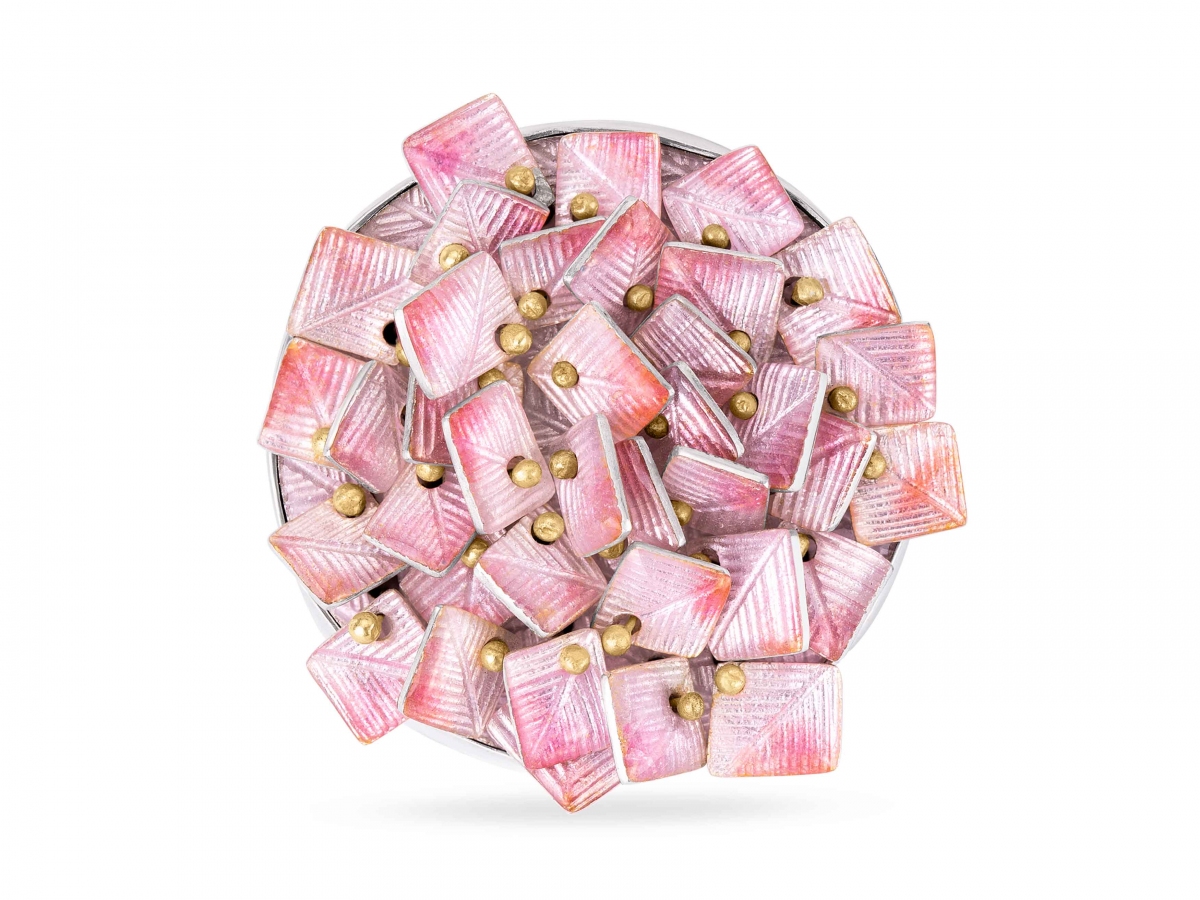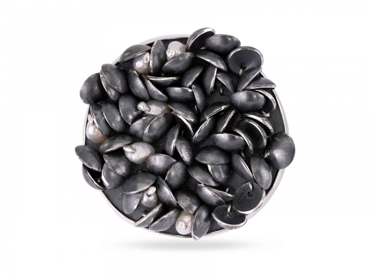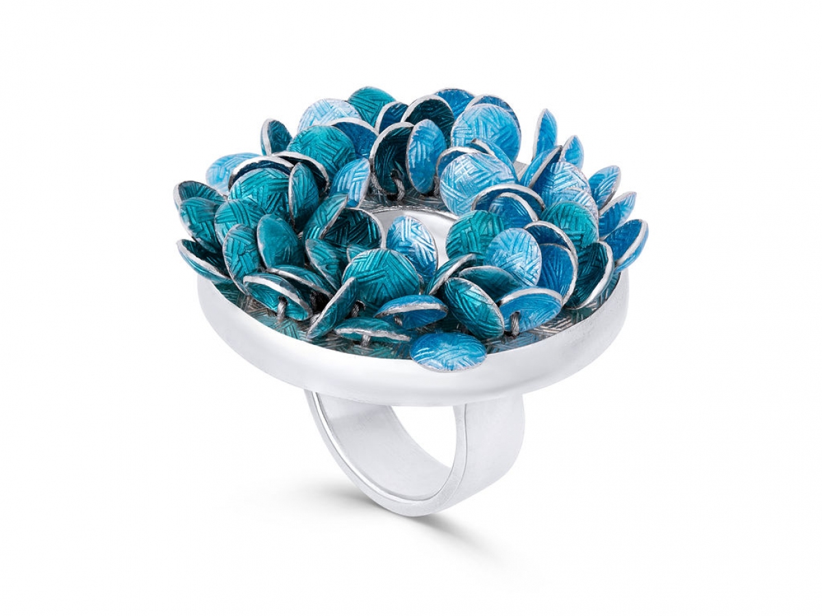 Each richly textured piece comes together slowly, every element hand crafted using traditional and ancient techniques. The silver surfaces are engraved by hand by Charlotte, to catch the light, before firing them multiple times in a kiln at up to one thousand degrees centigrade to produce a shimmering transparent colour.