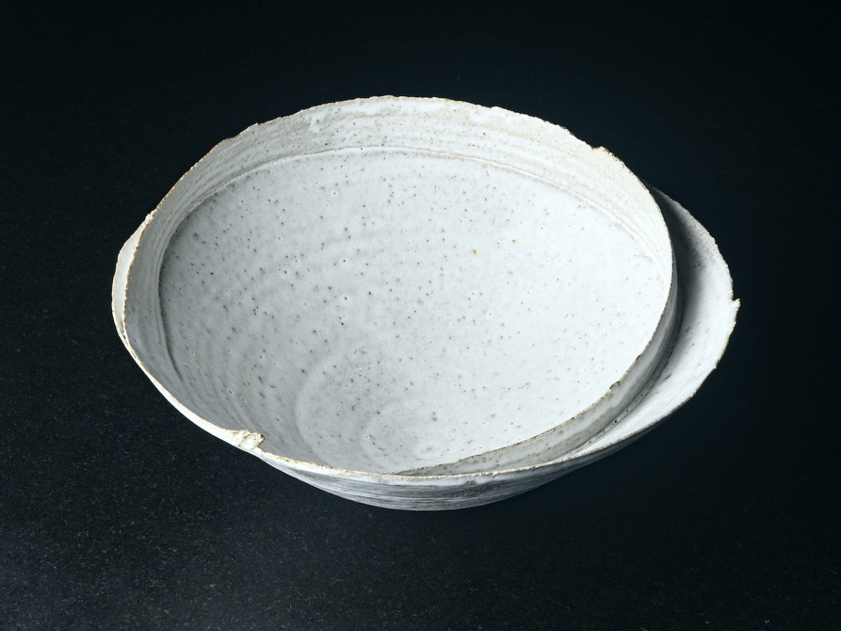 My vessels start life as thrown forms which I make on the wheel before cutting, joining and distorting. Oxides and engobes are used sparingly to enhance details, before glazing with my quiet palette of glazes.