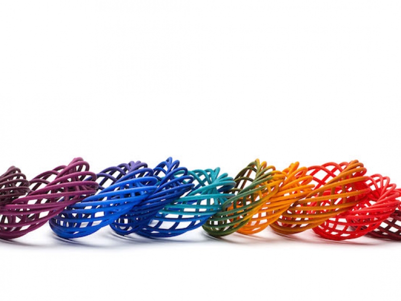 Love the vibrant colours in Katy Luxton’s nylon bangles. Very architectural but light at the same time. Simple statement pieces.