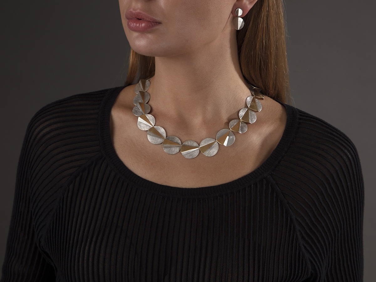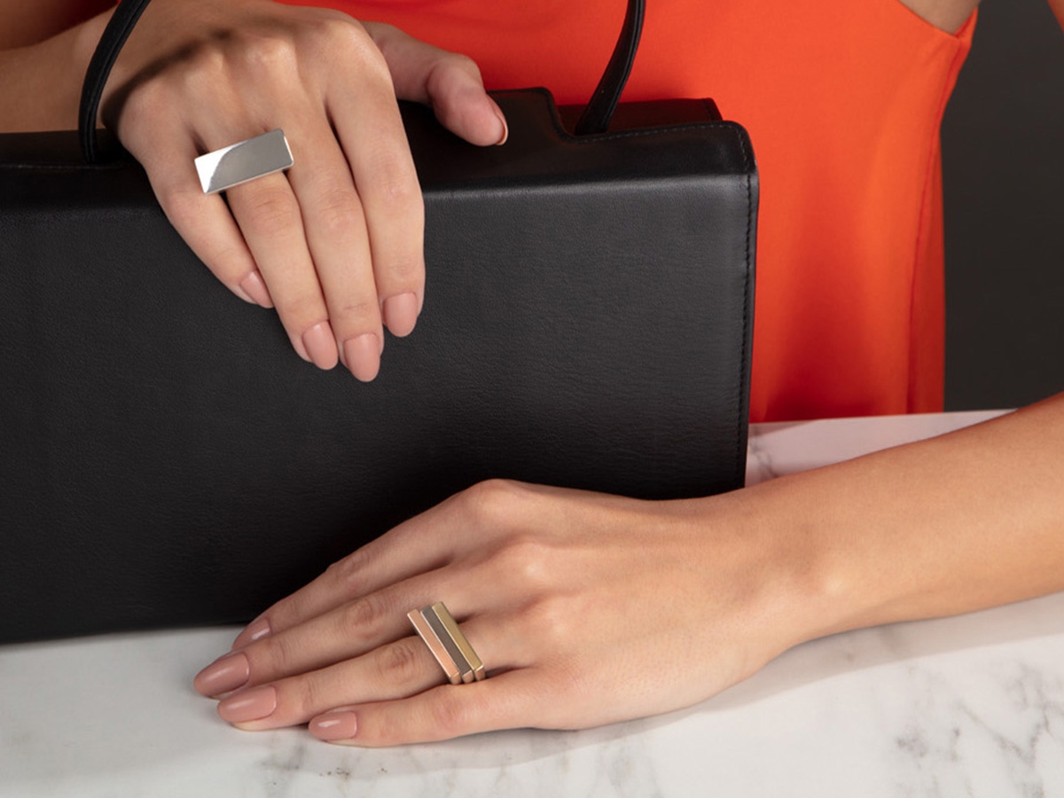 Sculptural, playful and minimal, my jewellery references architecture, geometry and nature. I like to contrast 18ct gold with silver and various textures, highlighted with unusually cut sculptural gemstones and diamonds in my rings, necklaces and earrings. Alongside my collections I enjoy working on commissions with individual clients, adapting a ring with a specific stone or making something completely unique.