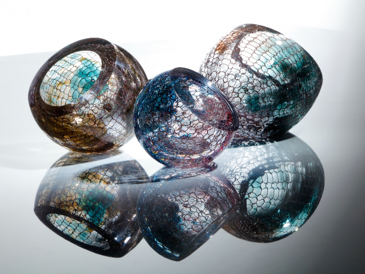 I combine my love for knitting and glass to create original blown glass pieces.