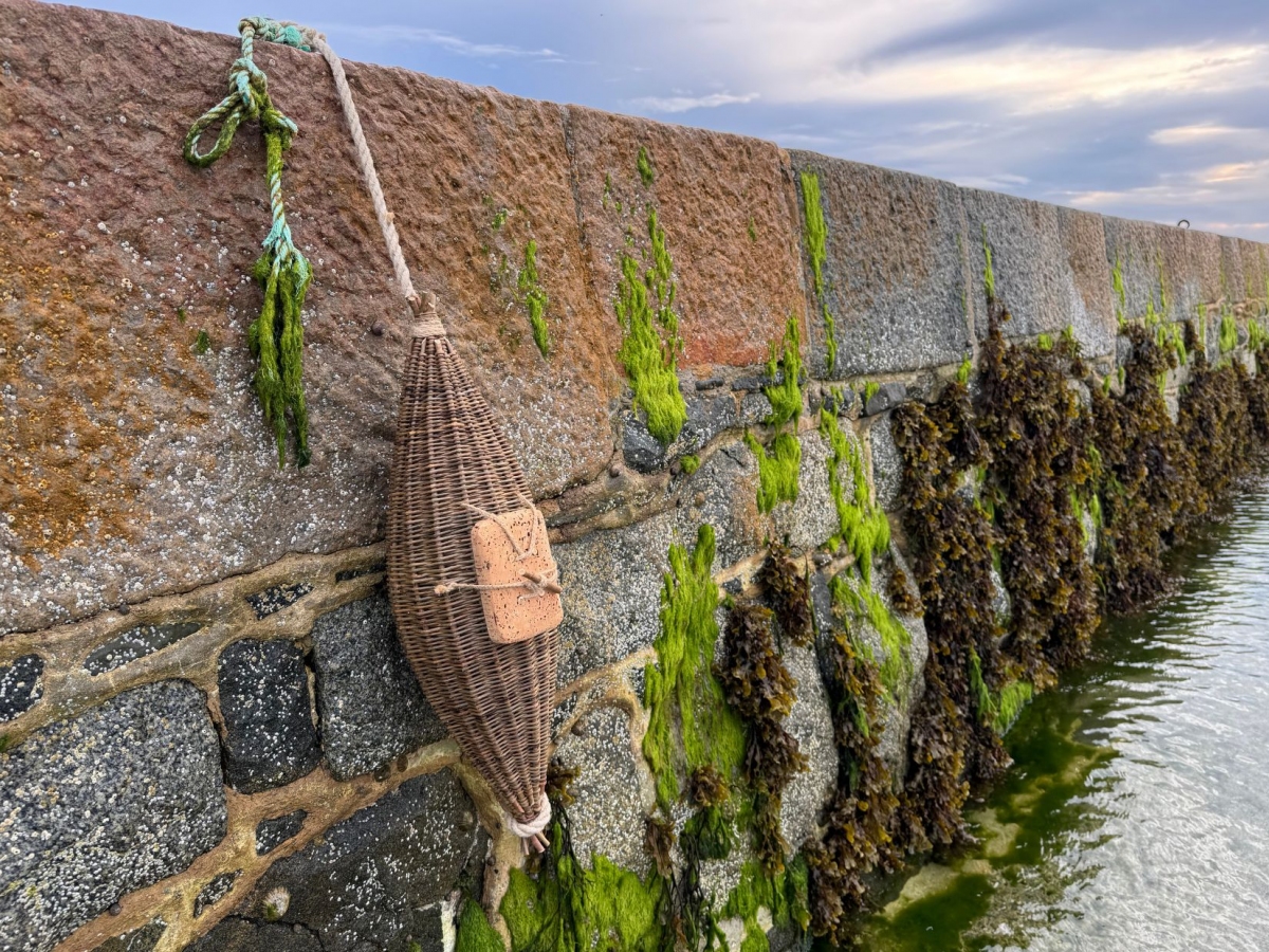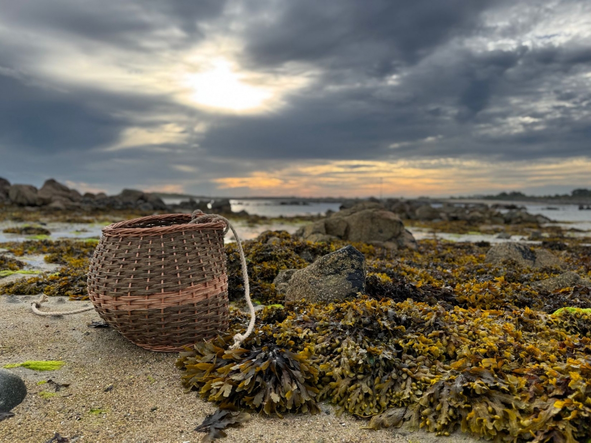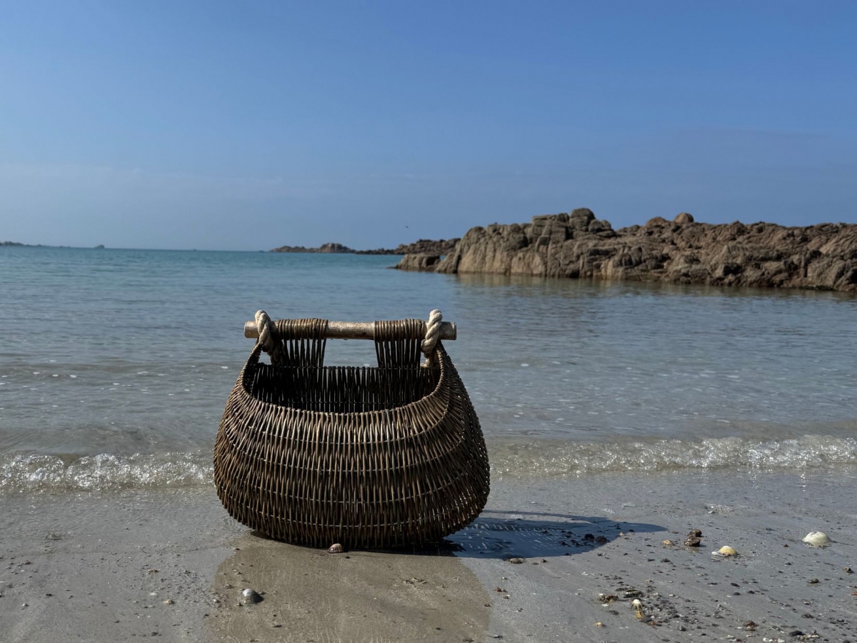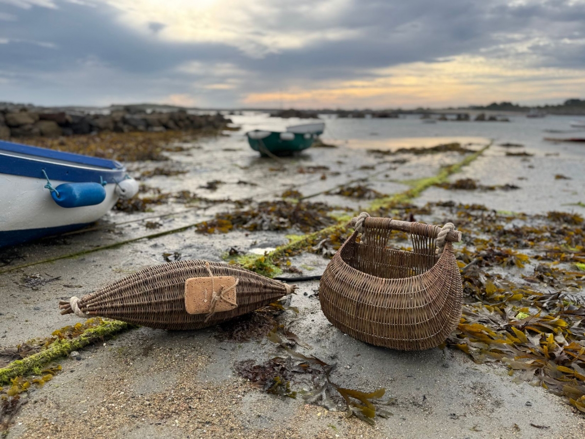 Claire specialises in making Guernsey fishing baskets, a craft that she’s learned from her Dad, a retired Guernsey fisherman and craftsman who made all his own willow crab pots, ponier à cous and courges (local fishing baskets).
