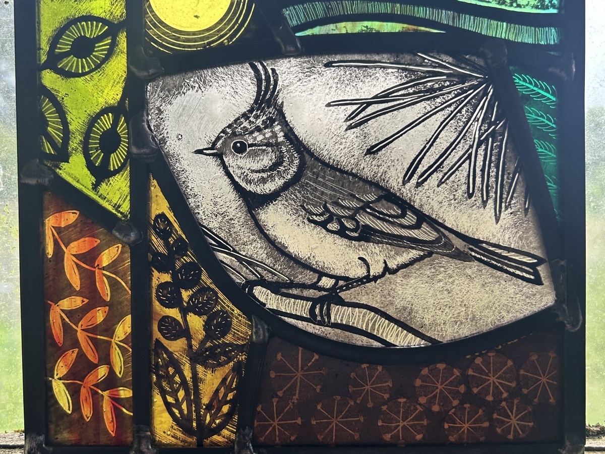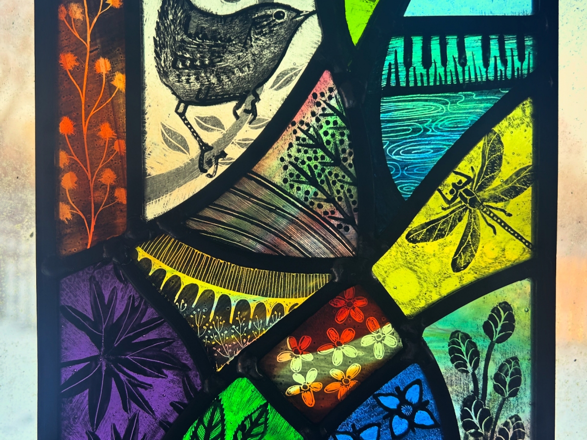 After completing a Degree in Illustration and Graphics I trained in the traditional technique of hand painted leaded Stained Glass. I have slowly built up my business over the last 10 years an work to commissions, exhibit in galleries, attend craft fairs and now teach and mentor students. I am a member of Heritage Crafts and recently have moved workshops to a site in Ellesmere in North Shropshire where I work alongside other heritage craftsmen. I began my business making panels and potholes for narrowboats as I lived on one and was then given the opportunity to be the main glass artist for Sacred Stones to make memorial panels for niches in their Long Barrows. This gave me valuable experience on commissions based around remembering loved ones and from that I have felt drawn to symbolism in nature, in particular a love of birds. This has appealed and resonated with people who collect my work as it is often very personal and meaningful to them.