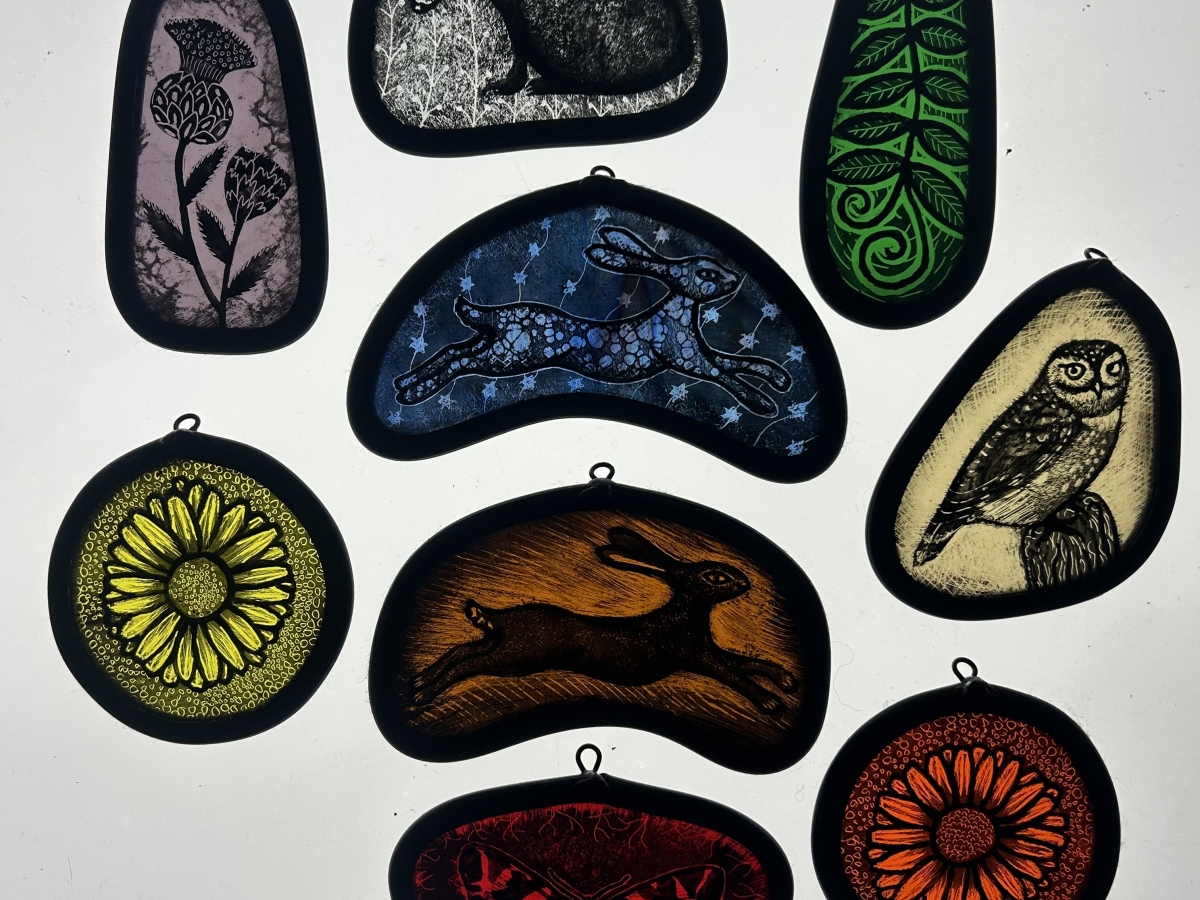 Having had many personal challenges I realised the importance making the pieces have been in recovering from a breakdown. Painting on glass is very theraputic and liberating and so last year I began to teach how to paint by running a social prescribing course and one to one in my workshop. I hope to teach more in the future as well as developing my work further along the themes of spirituality and our connection to nature.