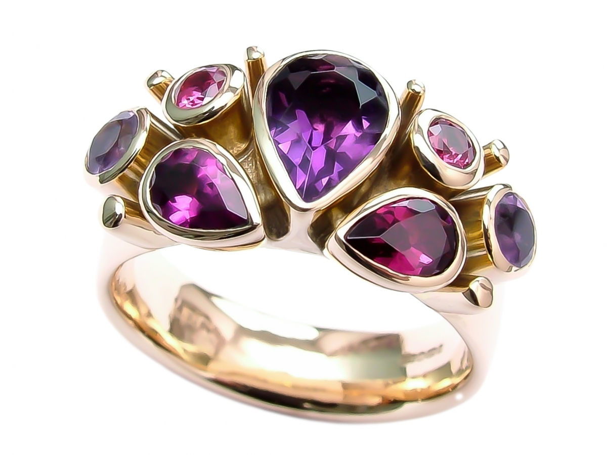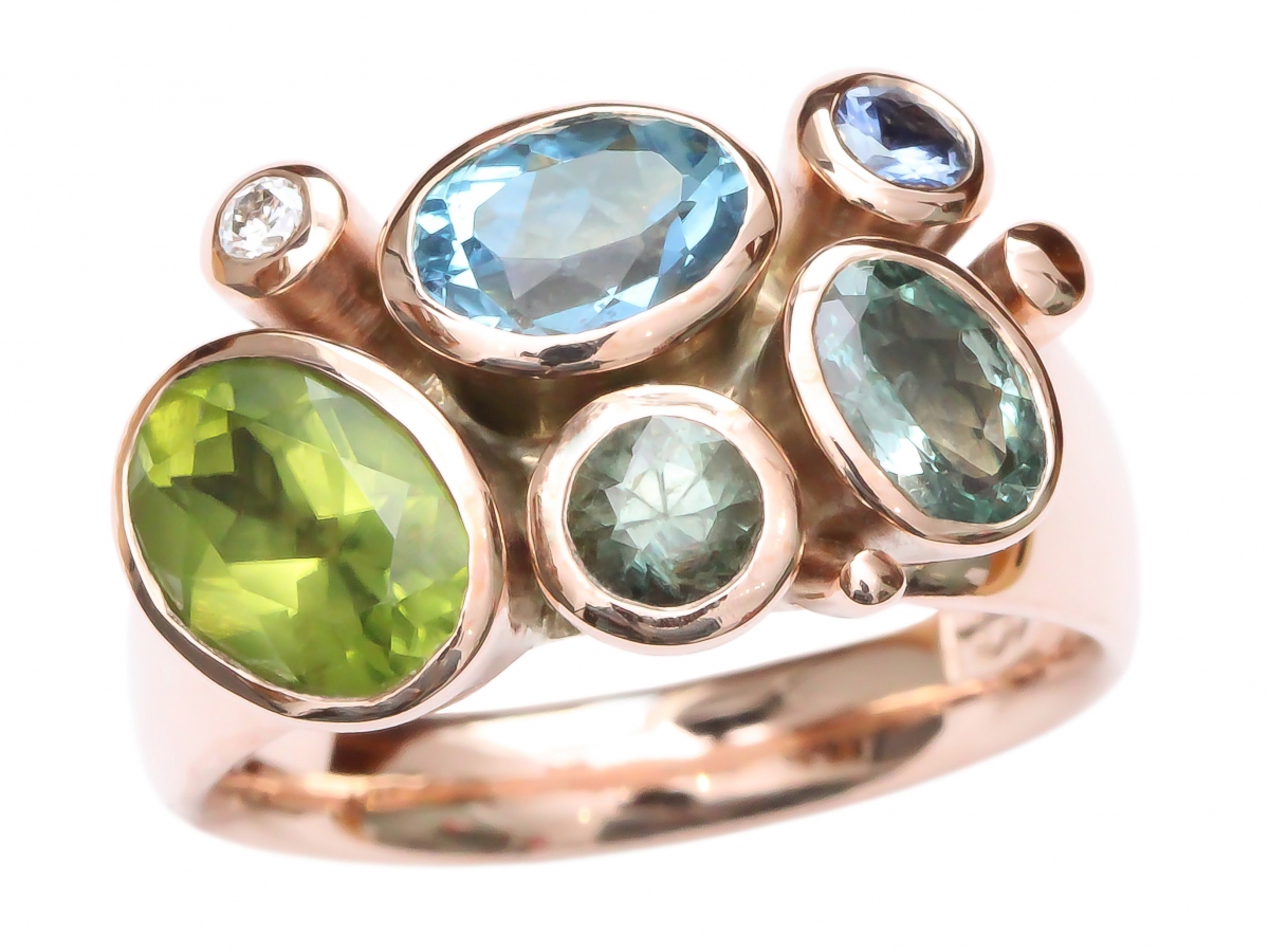 As a self-taught Goldsmith, with now more than 25 years at the bench, Helen’s mixed-media background allows her to approach jewellery design from a somewhat unorthodox perspective. Preferring to explore new designs in the workshop, rather than in a sketchbook, she is usually inspired by a particular gemstone or setting which becomes the feature of each piece of jewellery.