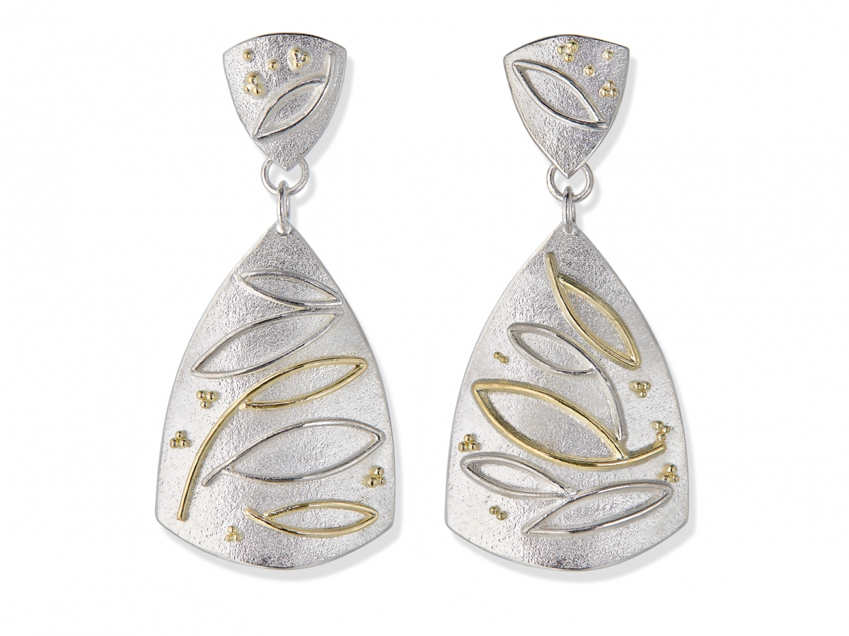 Hendrike creates jewellery which has a clear, understated and elegant aesthetic. She is fascinated by lines and patterns in other art forms or which may occur in nature. These find expression in her pieces through the application of gold patterns on silver backgrounds. The pieces are designed and hand-made by Hendrike in her Hertfordshire studio.