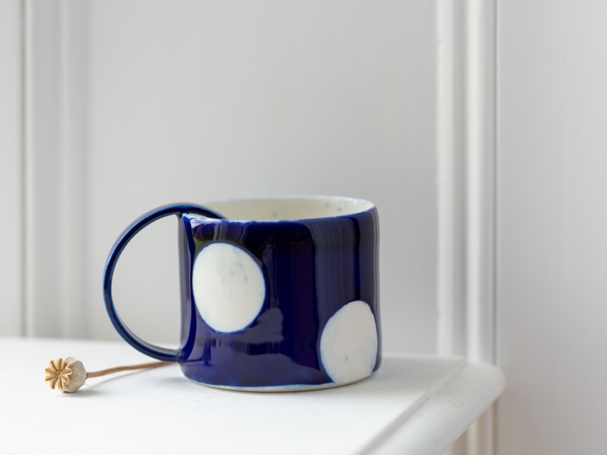 She experiments with her own glazes (often cobalt-rich blues) and reveals juxtapositions in texture and colour against naked clay.