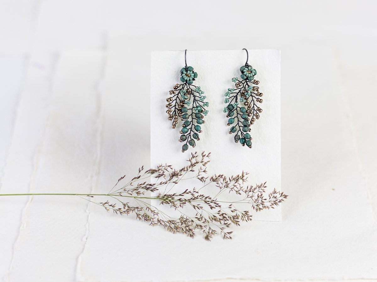 I've been working with wire for twenty years and am always creating new designs and developing the way I work. I come from a Textile background, with a degree in Embroidery which set me off on my path exploring intricate details, subtle colour choices and delicate textures. When I'm working on new designs I can spend hours searching for the perfect colour of beads to work together to bring my vision to life. Alongside my jewellery I also design and make wedding accessories as Judith Brown Bridal.