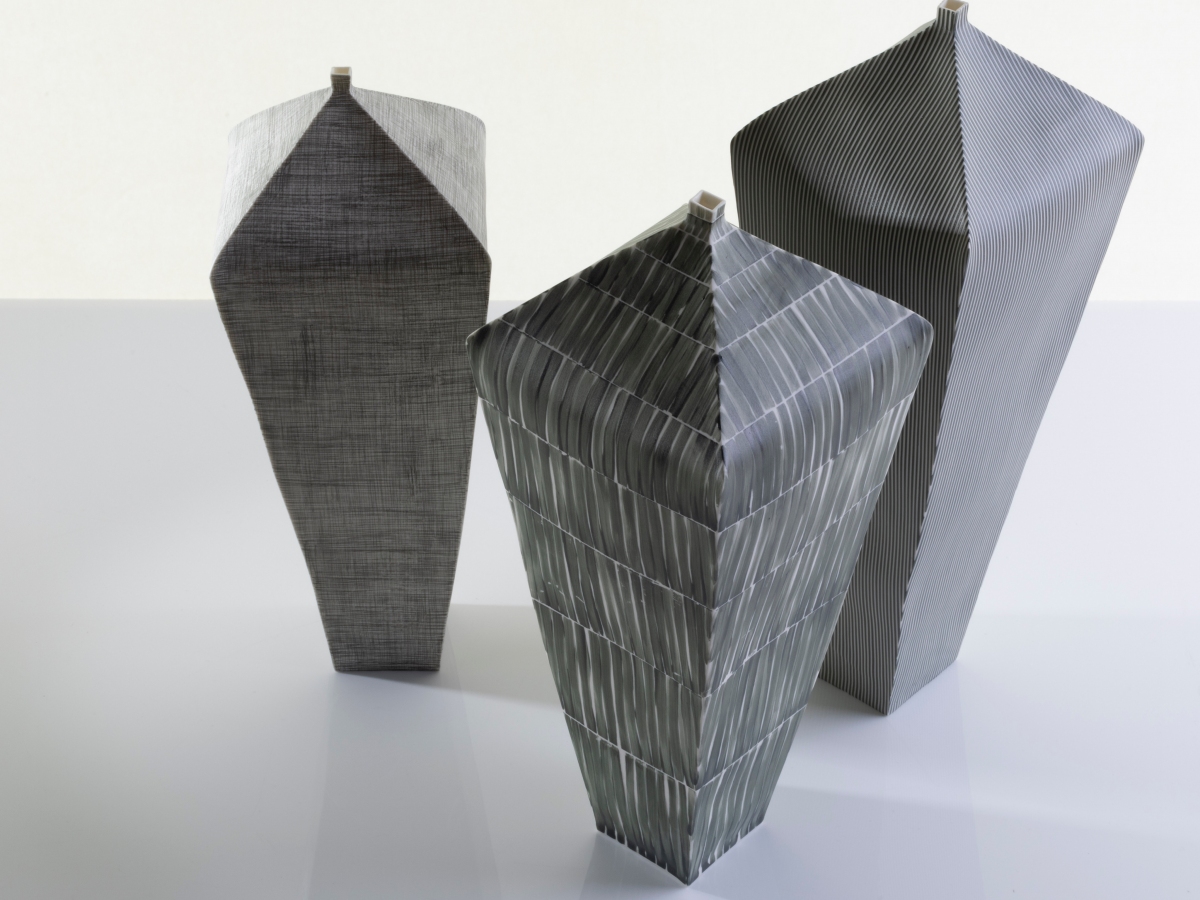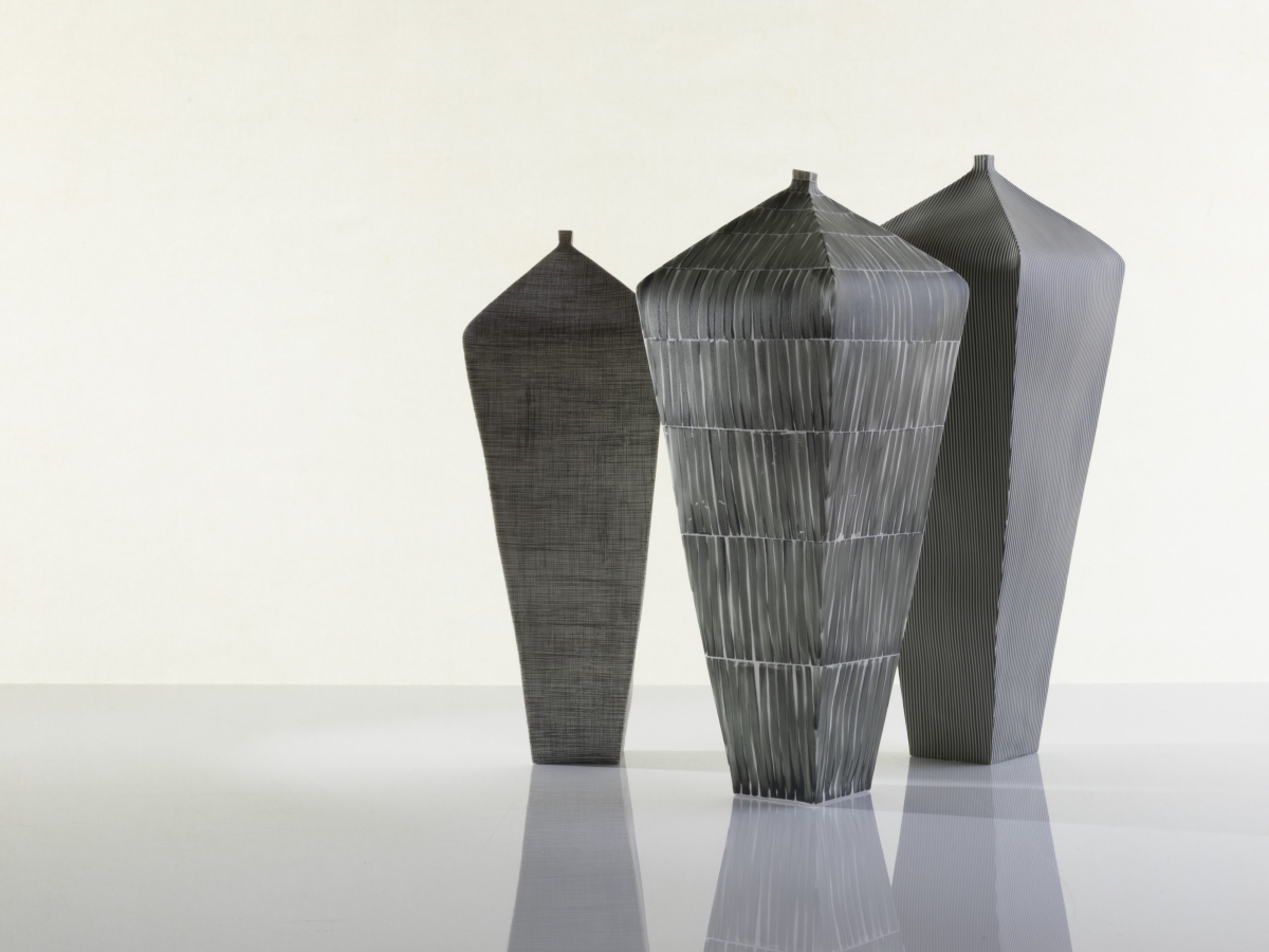 ‘Justine Allison’s intricately made vessels are eloquent and uplifting. Effectively so because of their unassuming presence. Light is attracted to them, held, and radiates from them. There is a quietude to Justine’s work that reflects both the meditative process of its making and the grace of the finished forms. They are not perfect, they are precise. They have strong lines and soft colours. They are fixed forms that convey movement. They are vessels that make us hold our breath.’
