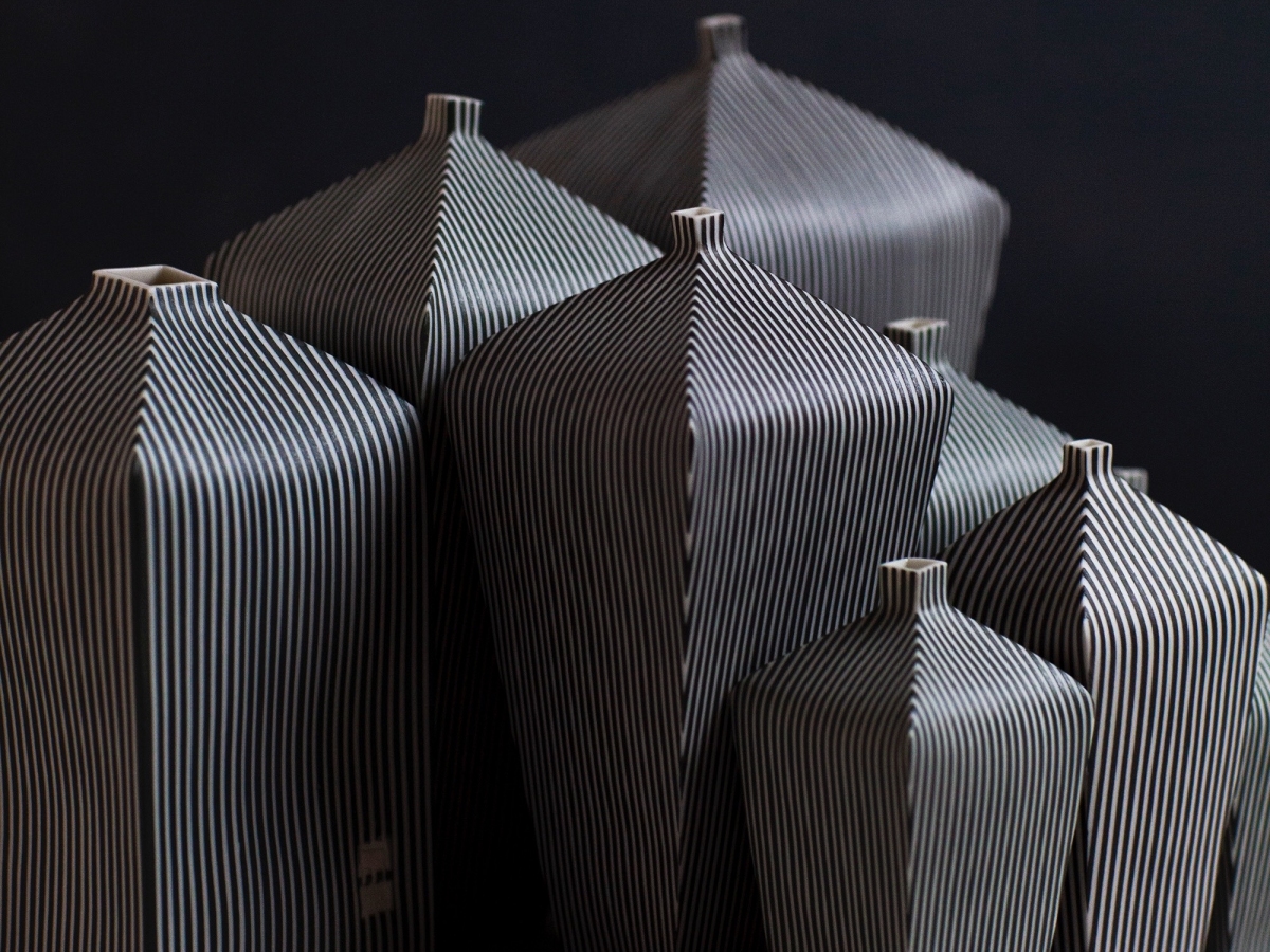 My work is very much concerned with the simplicity and beauty of the clay and incorporating pattern and texture as well as glaze to create subtle, unique variations. Thinness and movement are very important in each piece. From different heights and angles the dynamic relationships shift and change, the scale of each vessel allows the clay to move in a more tense yet natural way. Multiple connections can be seen between shape, form and surface, drawing the viewer in and encouraging them to look into and around the groups, each one displaying its own unique character and conversation.