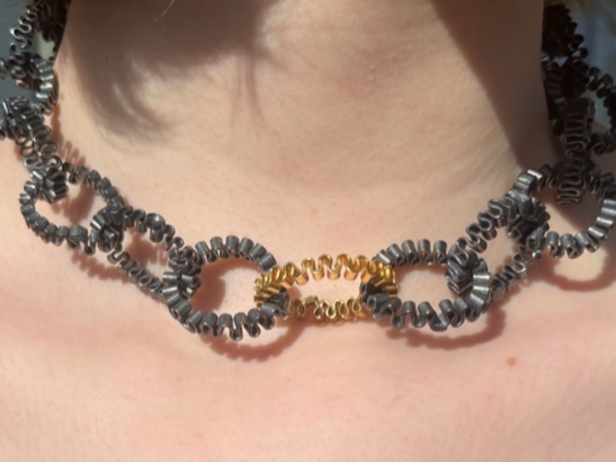 I graduated in Jewellery & Silversmithing from the Cass, London in 2012 and work from my home studio making small batches of jewellery for contemporary craft fairs, galleries and exhibitions. I use recycled precious metals for my main body of work and also have a bespoke textile collection in stainless steel mesh cloth. My work almost always has an historical starting point, following costume history for inspiration but with a contemporary edge. I love the textiles and embellishments from past eras, for example the Elizabethan ruff for its fine detailing and dramatic scale or the fringing on 1920s dresses. The design process usually involves the writing down of a single word - ruffle, pleat, fringe, weave – and letting ideas spring from there.