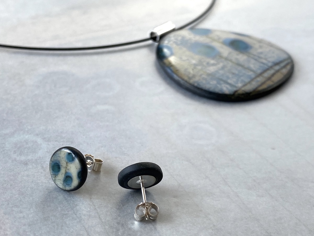 The designs for the jewellery are taken from my larger wall mounted work and maintain the detail and quality of the original art work. I work form my garden studio on the edge of the Yorkshire Pennines, a landscape which is a contrast of vast open moorland, hills and valleys and woodland with meandering rivers. The work is very much inspired by a love of nature and the lines and patterns within the landscape.