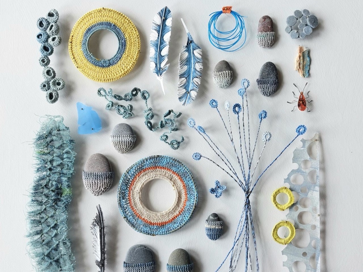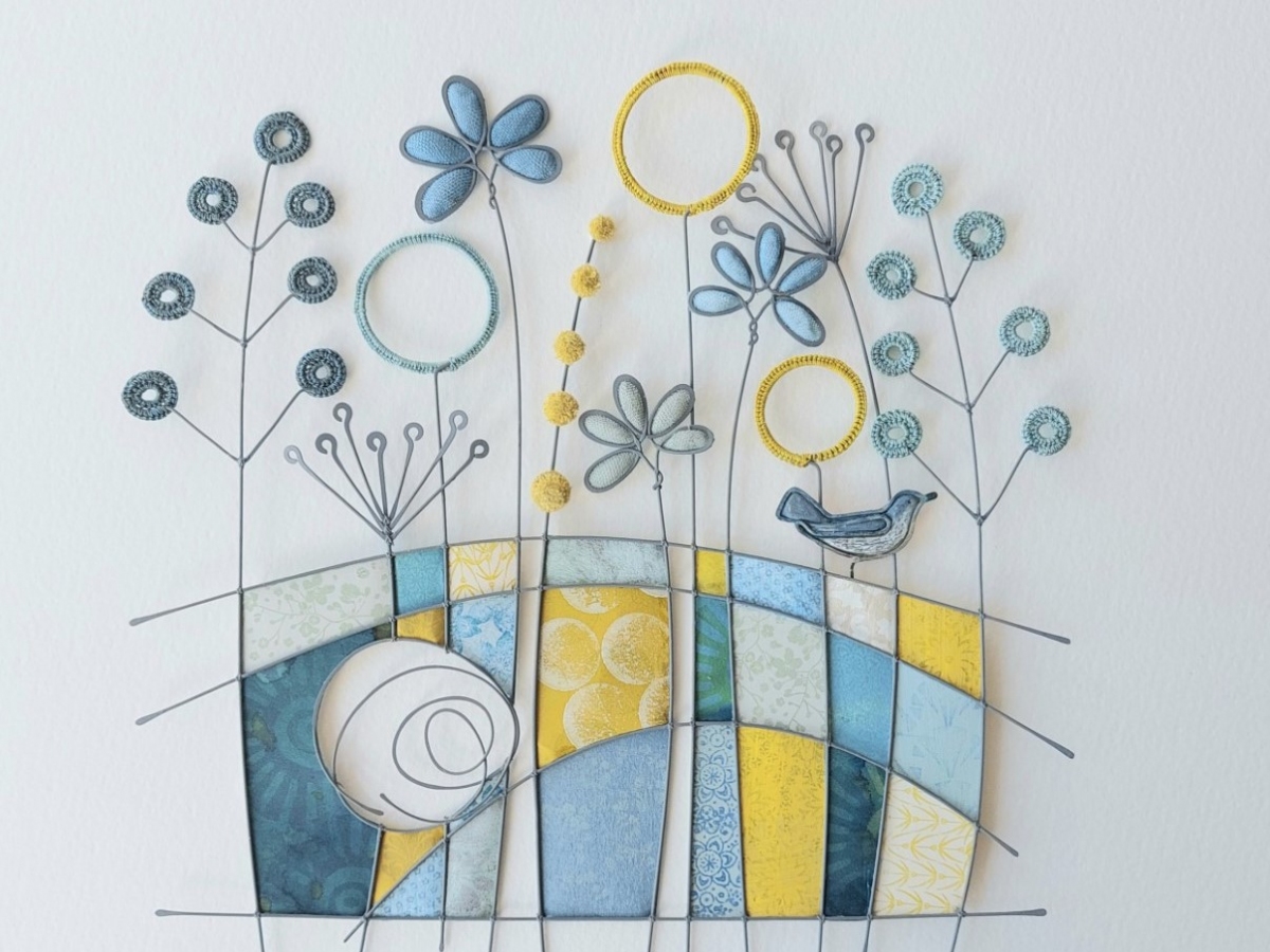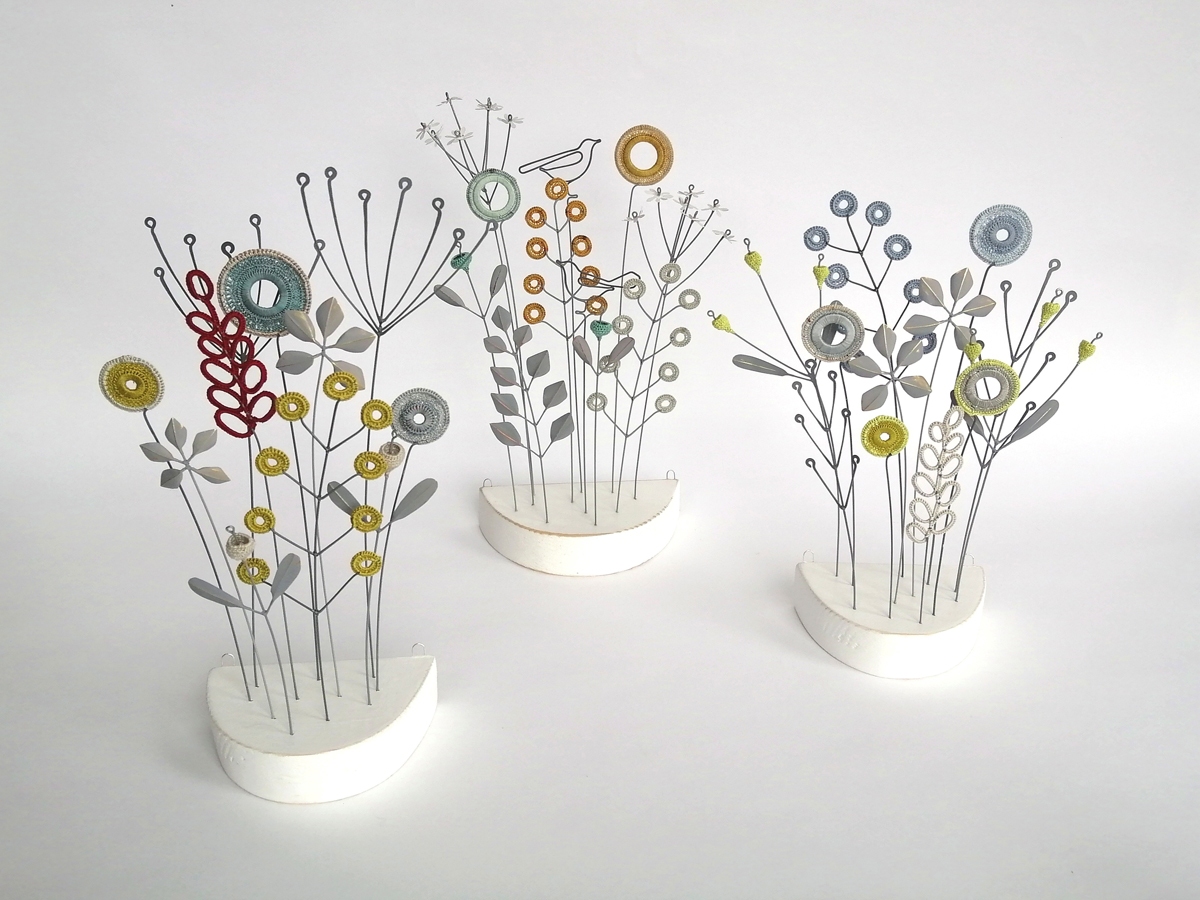 She lives and works in Manchester where she studied Embroidery and went on to develop her own practice and teach textiles and fine art. Over the years her work has evolved and has become focused on the use of mixed media with a fascination for wire and crochet.
