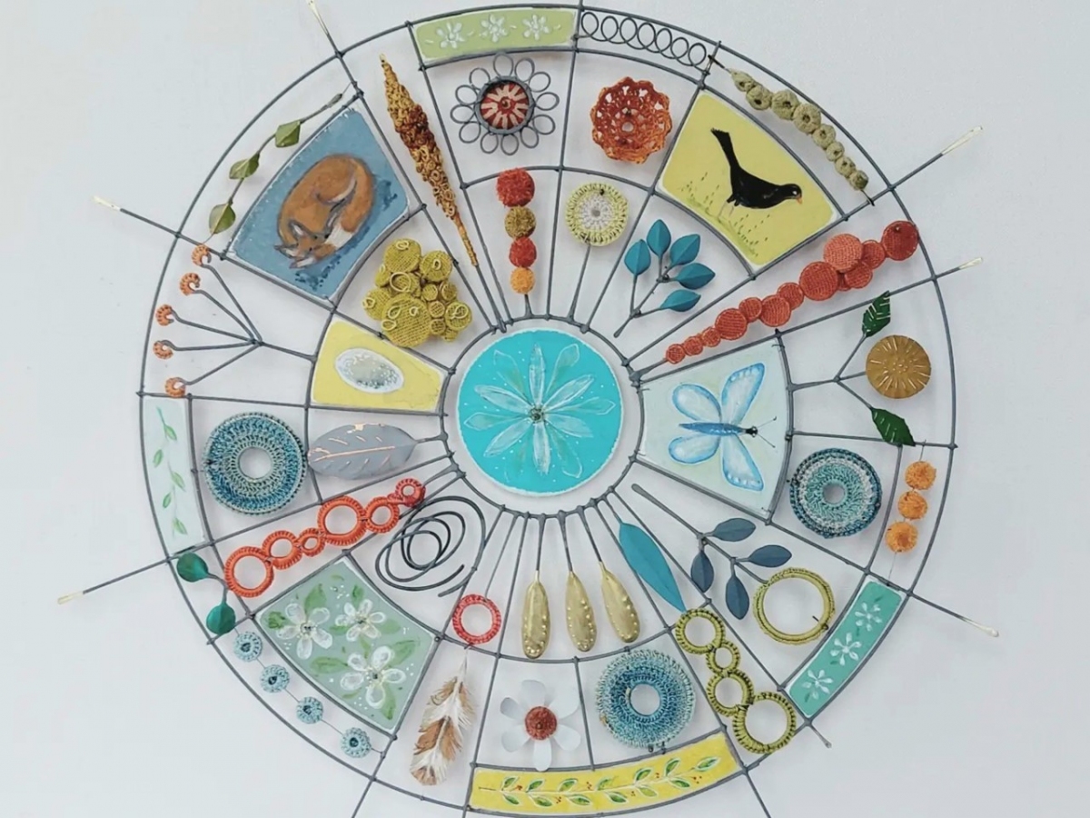 Liz cooksey works by combining wire and thread used to create intricate and delicate two dimensional and three-dimensional works reflecting her observations of nature. The inspiration for her work stems from the love natural forms in which she looks for shapes, textures, colours, within what might be a hedge row or a motorway verge, recording the small and insignificant details that can be sometimes overlooked.