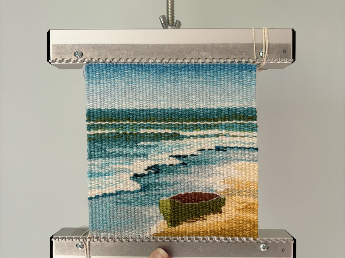 I love to use my artistic background with my tapestry work - using colour blending techniques with multiple fine threads. My work is very intuitive, specialising in small scale intricate tapestries where I like to push the boundaries of what you can do in a small space. I love to design images (cartoons) to work from and I am currently focusing on landscapes and seascapes. I was born by the sea and it holds a special place for me.