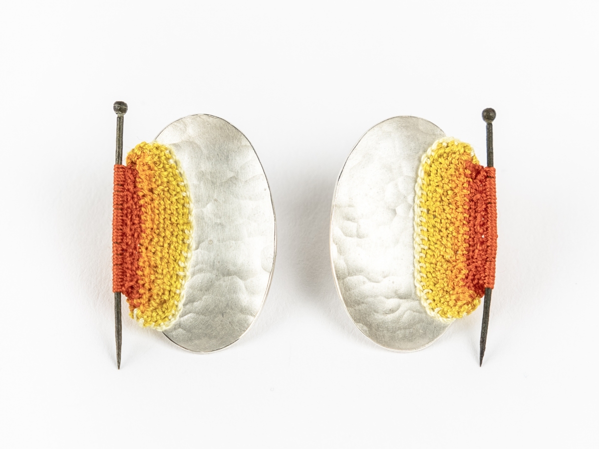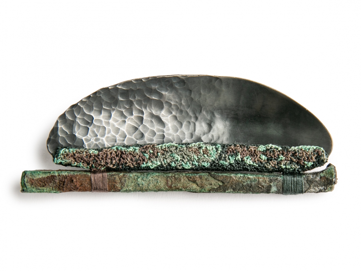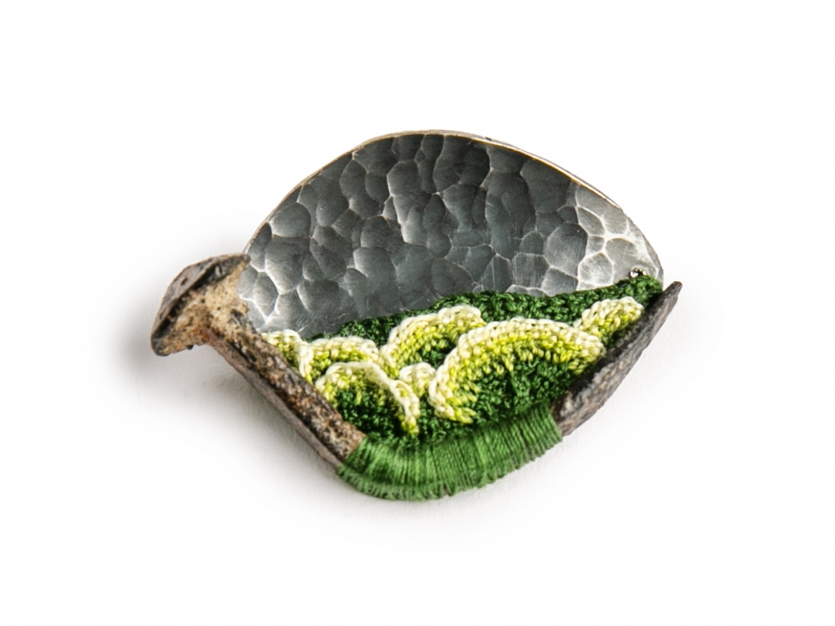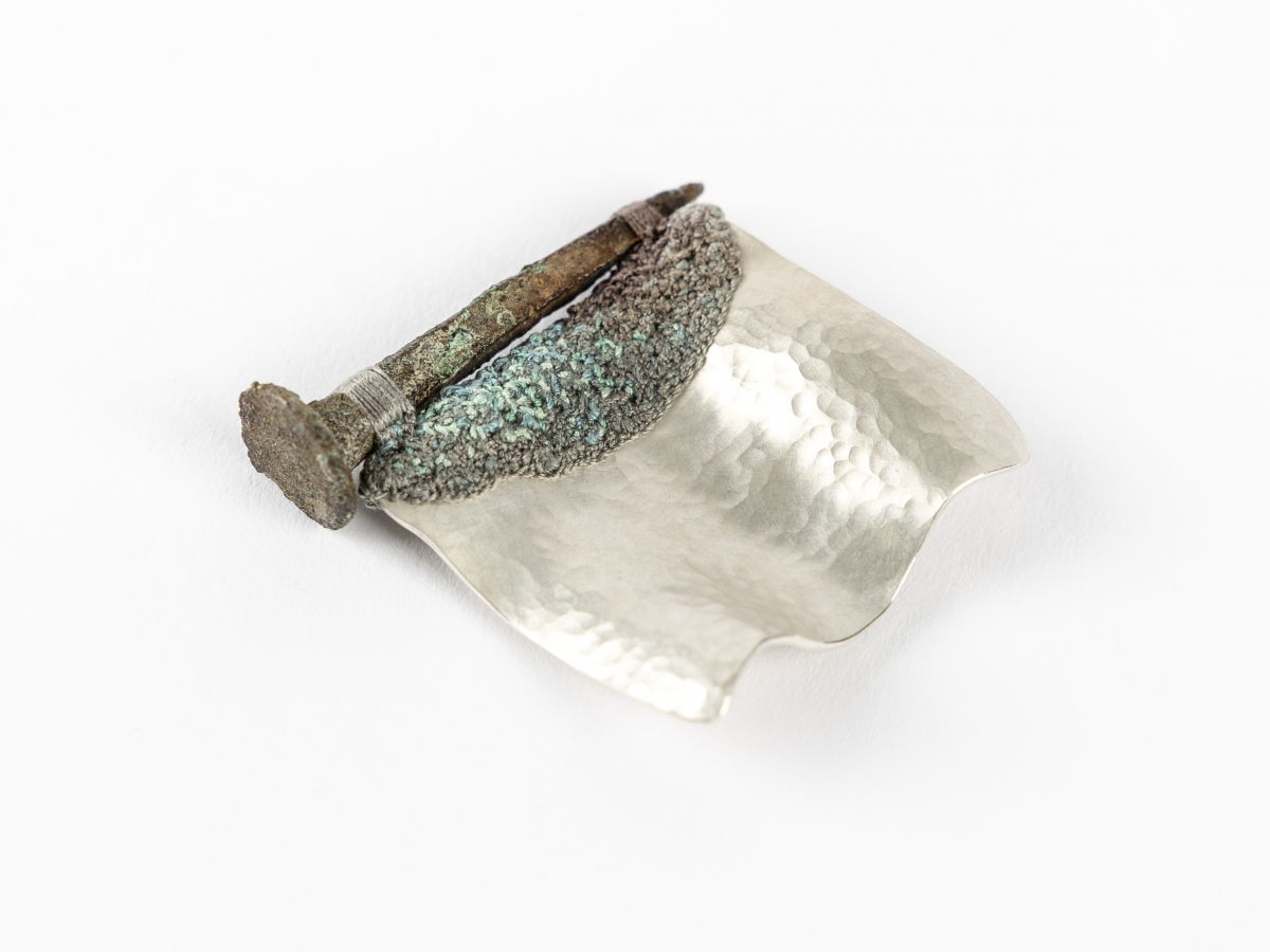 Liz is a Hertfordshire (UK) based jeweller, using silver & hand stitched silk threads to add layers of colour & texture to her work. She uses found objects collected from mudlarking along the River Thames, as well as beachcombing & metal detecting finds. Everyday objects, such as pins & nails, that were handmade generations ago & have had a previous life & use, are worked on by her hands to give them a new chapter & make them into little pieces of wearable history.