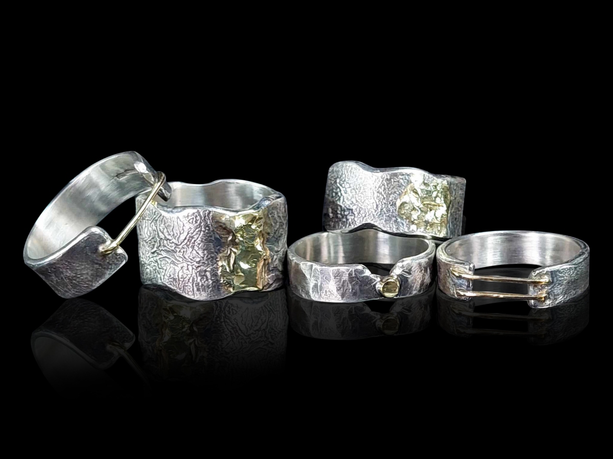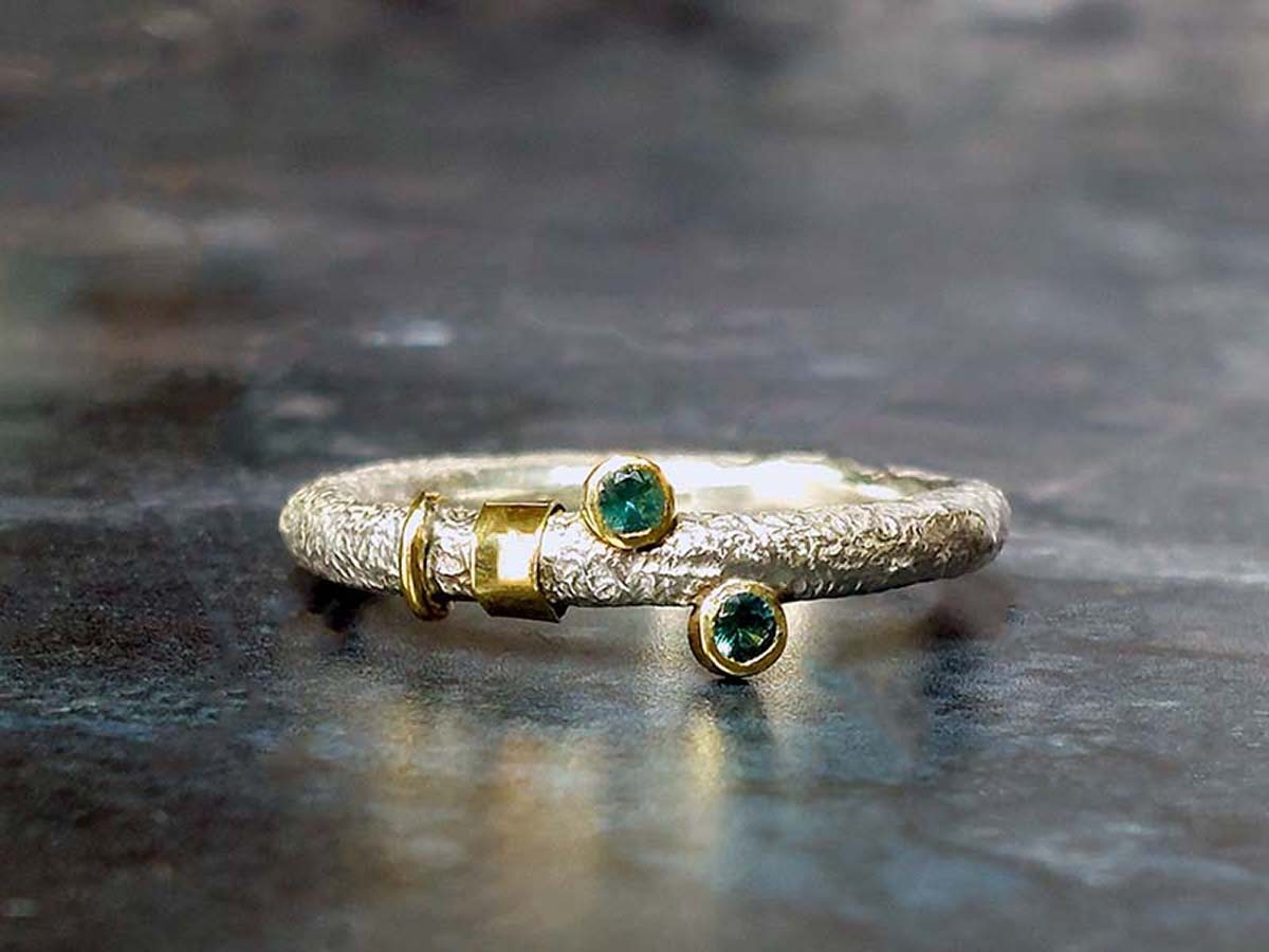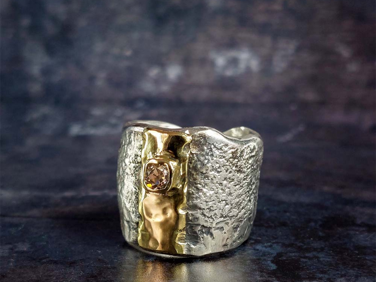 My jewellery designs feature a range of textures, patinas and finishes. The materials themselves inspire me, I often take cues from the stones and their forms themselves.