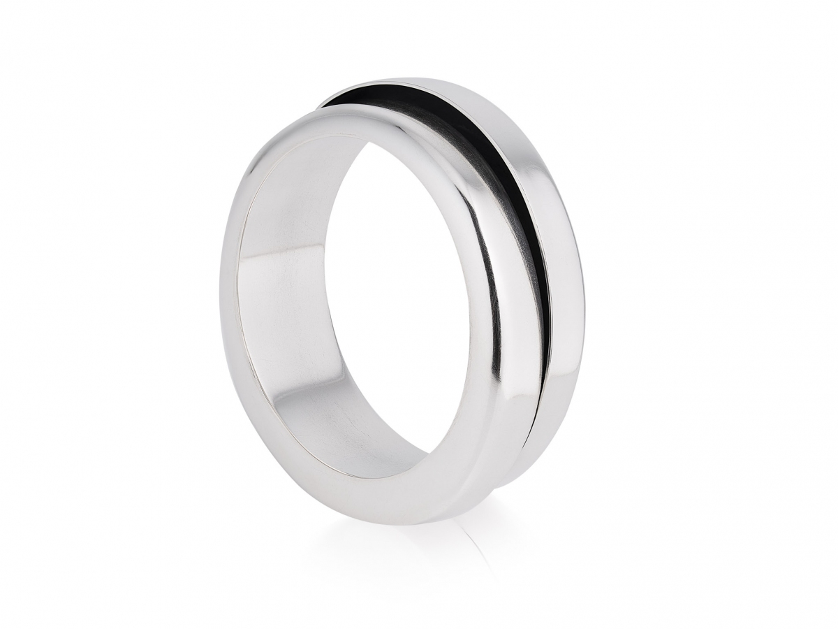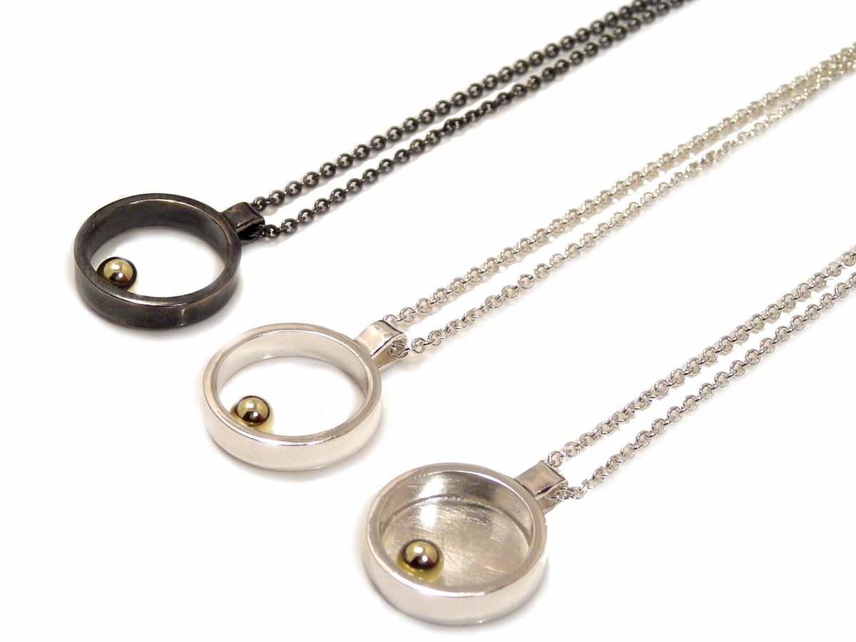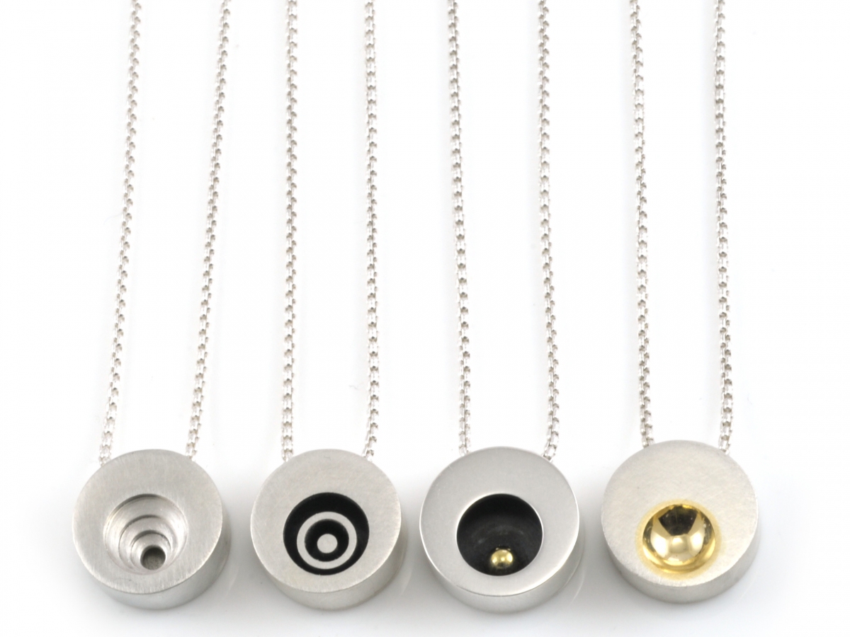 My jewellery is informed by the visual language of twentieth century modern art. Distilling the abstract forms and clean lines of modern art into my own self-imposed strictly limited palette, my work focuses on visually and physically strong shapes such as lines and circles. I finds creativity through restraint, making iterations of my chosen shapes and varying details. I have a drive towards design that is clean and crisp combined with a desire to push craftsmanship to higher levels. But it’s not all serious: a lightness of touch is present; perhaps an unexpected detail, a spot of optical illusion or a miniature scale to invite approachability. Although my work uses quite a formal visual language, there’s an edge of playfulness that entices the viewer to come closer, to interact with the pieces. These handmade pieces invite the viewer to handle them, feel their weight, touch their edges and explore their details.