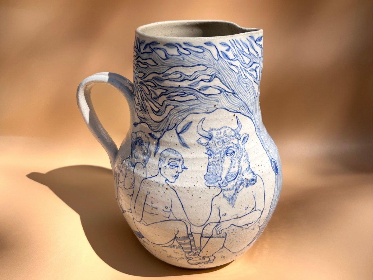 Each ceramic piece is a narrative, with scenes that unfold as you turn it in your hands. I love to create stories – sometimes captured in a single moment, and other times through multiple panels wrapping around a form. The tactile nature of ceramics allows me to build a world you can touch, hold, and explore.