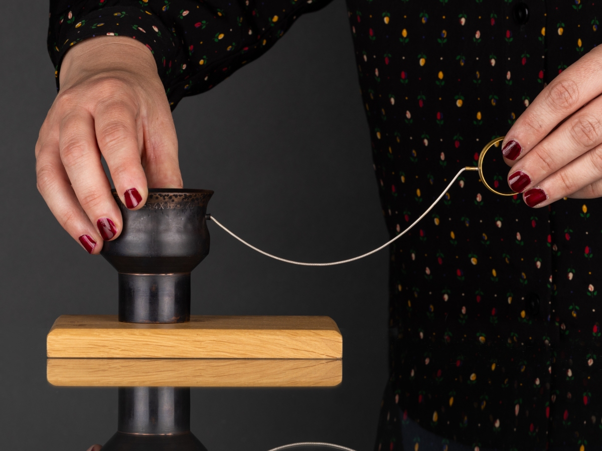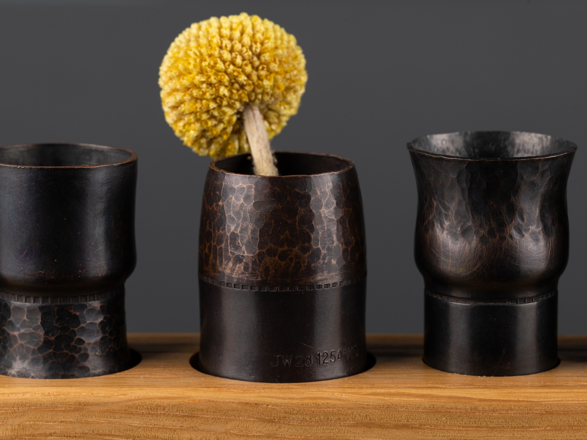Melissa Montague is a metalsmith whose practice explores traditional silversmithing techniques such as hammer raising and forging. Predominantly working with silver, copper and brass Melissa creates vessel forms and spoons, which question the boundaries between function and sculpture. Hammer marks and oxidization are used to create different surface textures and visual interest. Often complementing the metal objects with contrasting materials such as wood in the form of a plinth or base, a conscious notion to encourage the user to have these objects on display. Within her work Melissa explores the relationship between people and artifacts to establish a lasting connection through function, scale and intrigue.