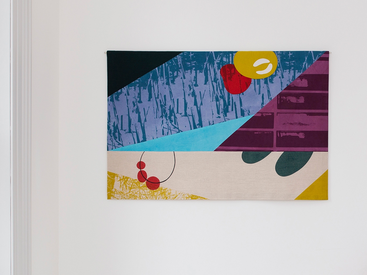 House’s hand-printed textiles are one-off pieces and go through several processes, including steaming and washing. Her compositions combine flat areas of colour with patterned graphic areas of print. Using screen-printing, painting, photography and hand-cut stencils, she layers dyes and pigments on combinations of textured fabrics with a skilful use of colour, using texture to hint at architectural surfaces.