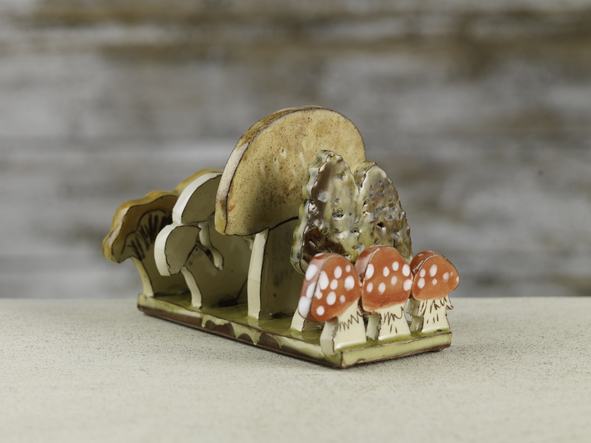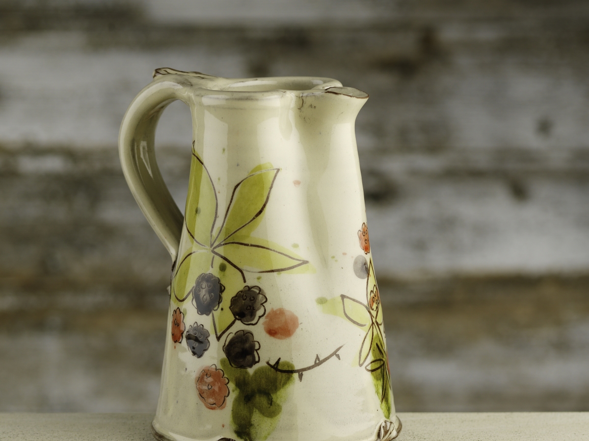 I make small batches of fun, functional, slipware pottery in my Edinburgh garden studio. My pieces are made from red earthenware clay coated in cream slip and then decorated with coloured slips and oxides and sgraffito lines.