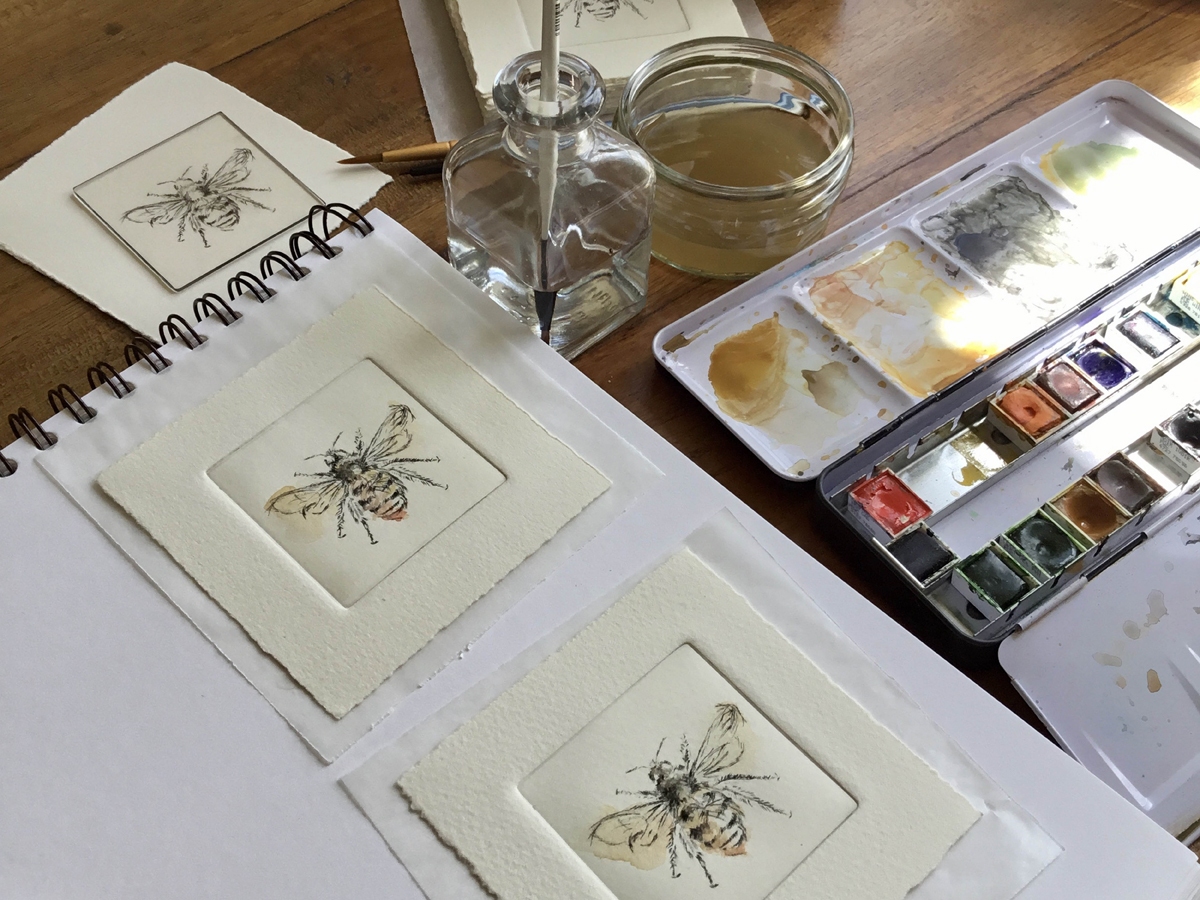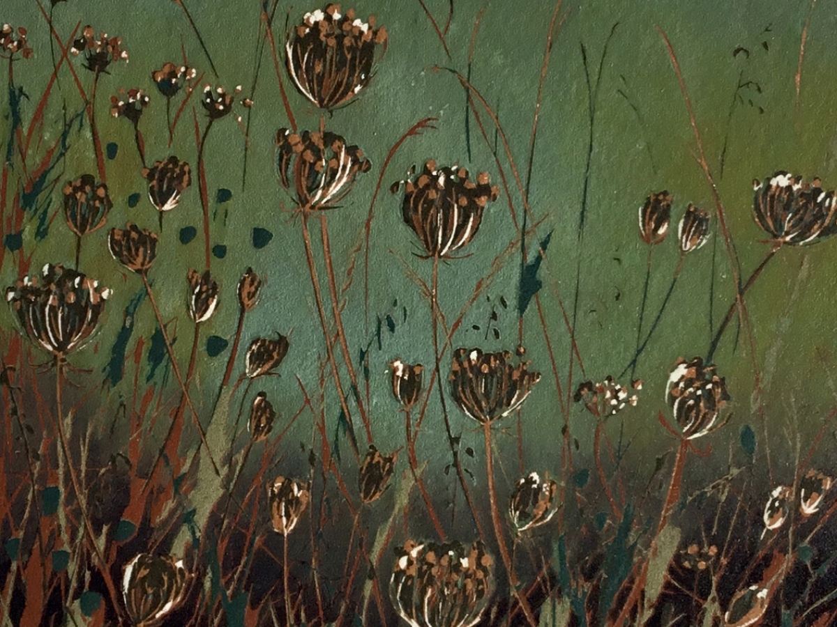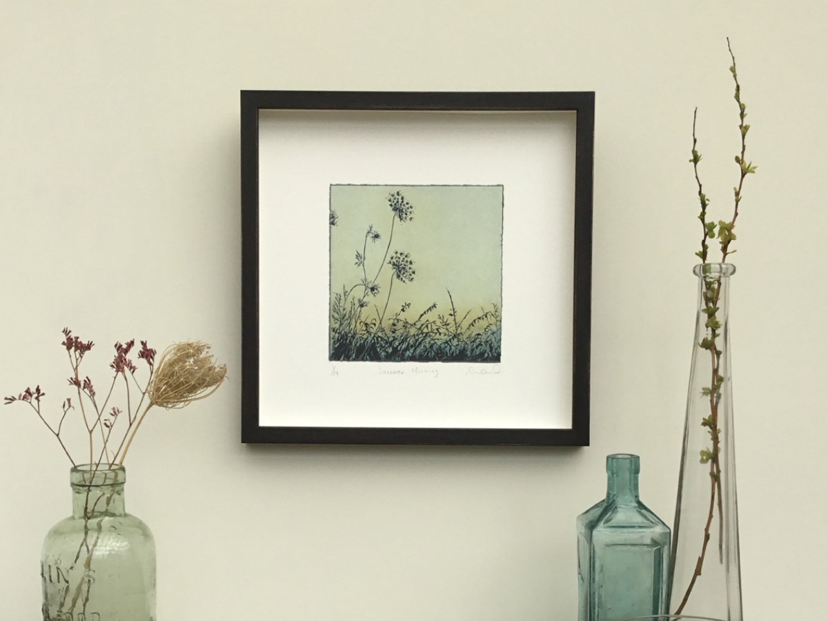 With a desire to evoke and convey the sense of a place, my prints start as sketches, a found object, a leaf, a stone, a record of the smells of the river, the sound of grasses in the breeze, the fading winter light on a hedgerow.