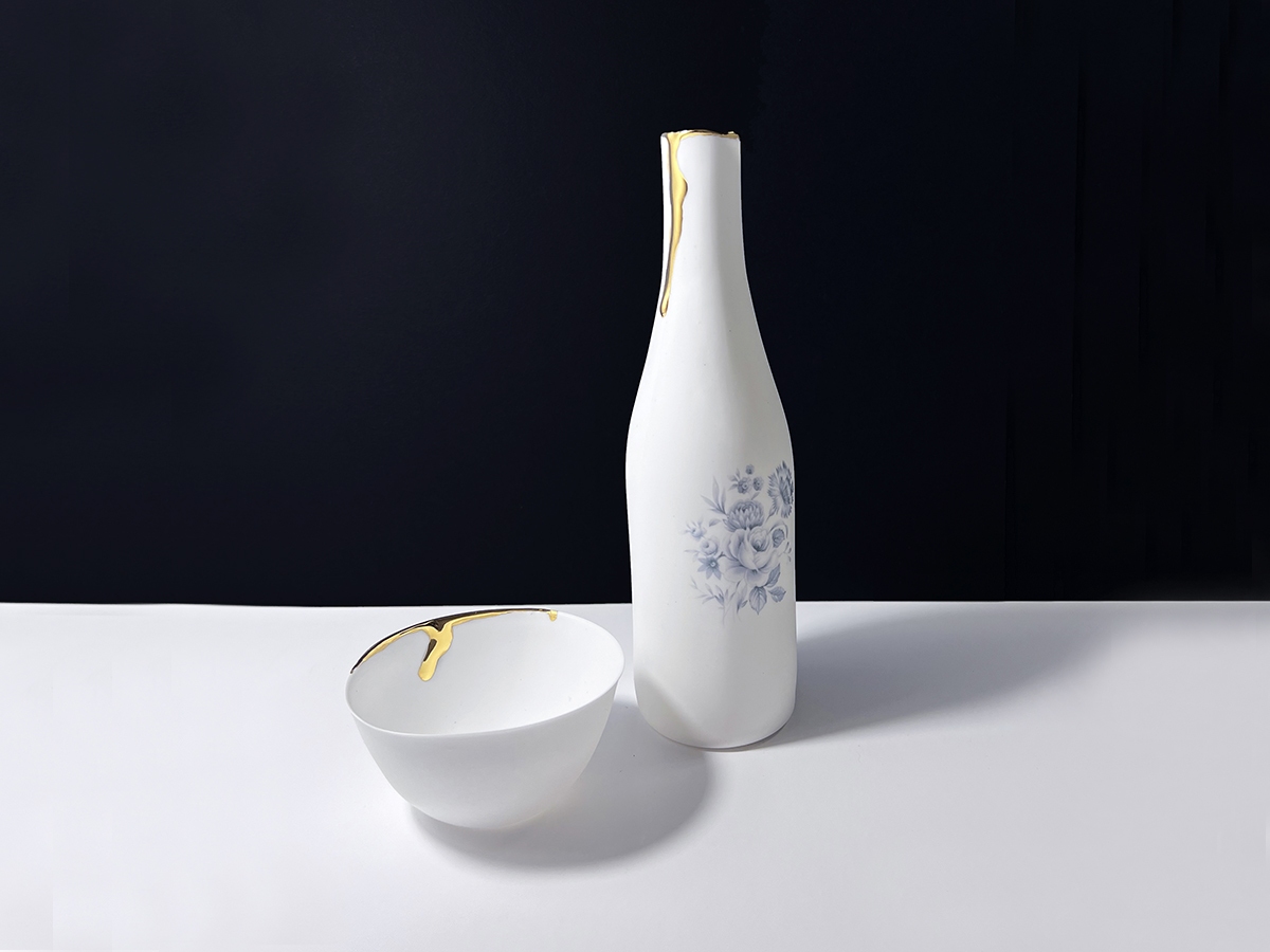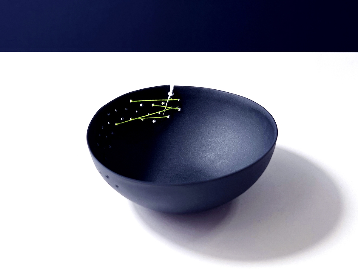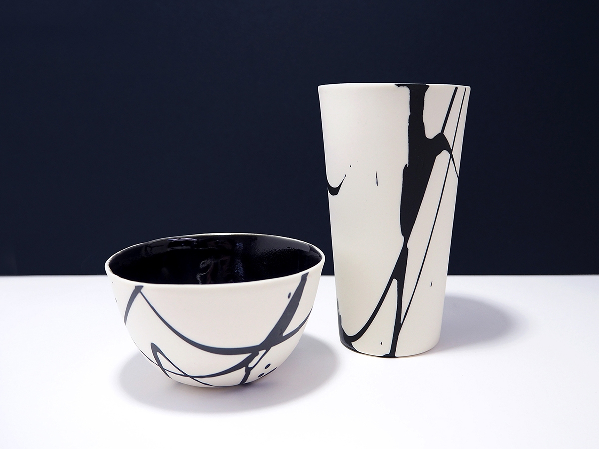 I work mainly with black and white porcelain and bone china, as I enjoy the purity and depth of colour they allow me to achieve - and despite both materials being known for their challenges, I really appreciate their qualities.