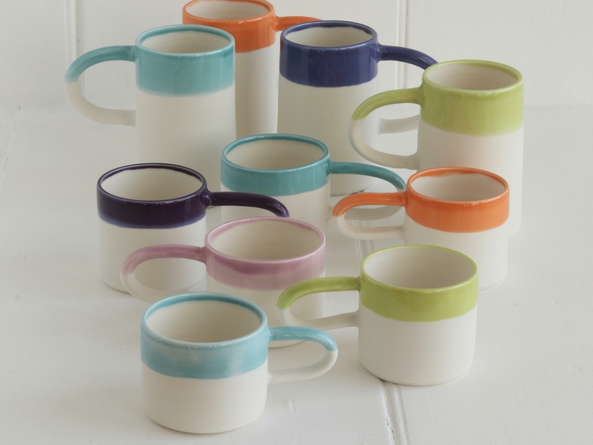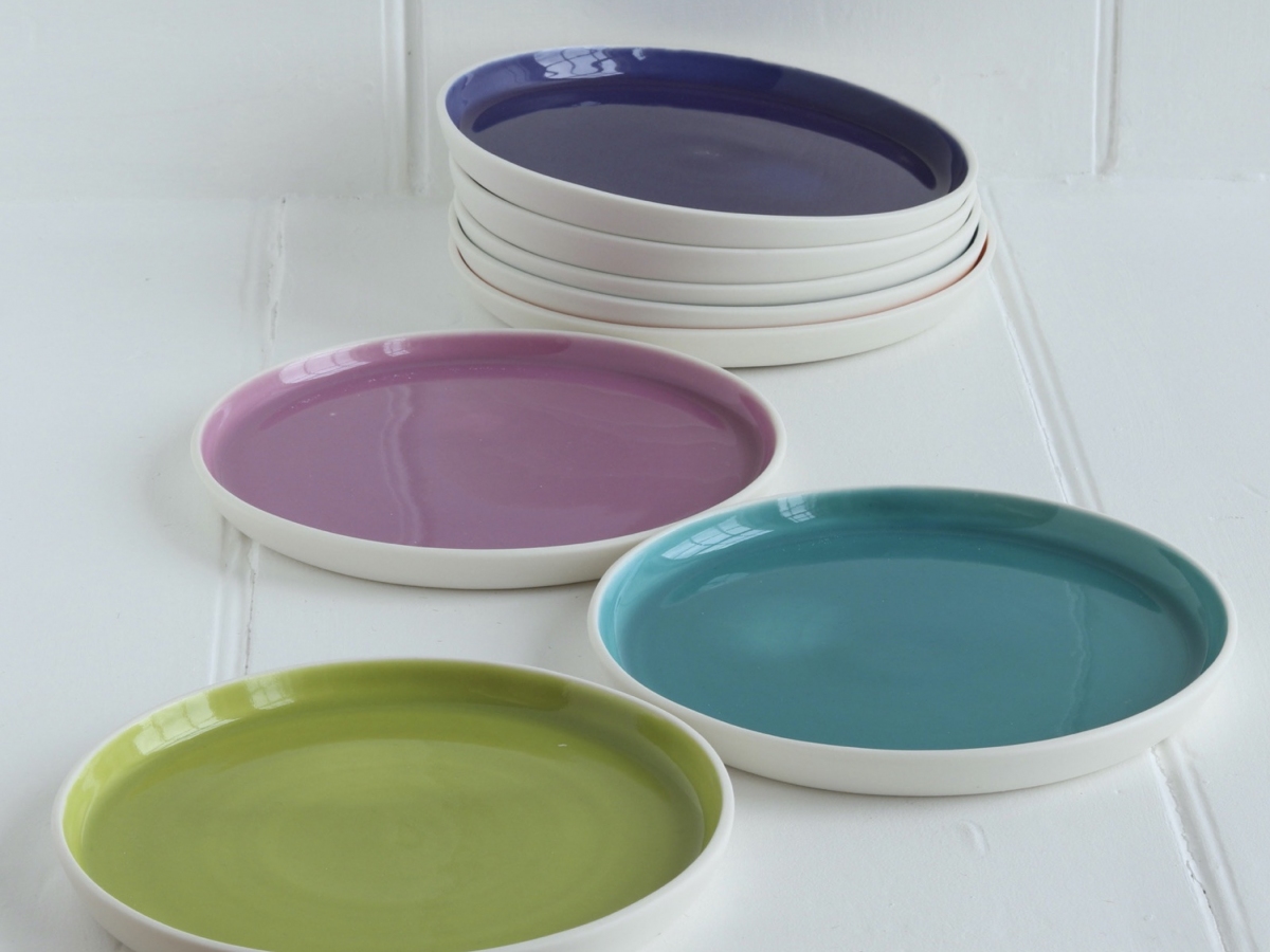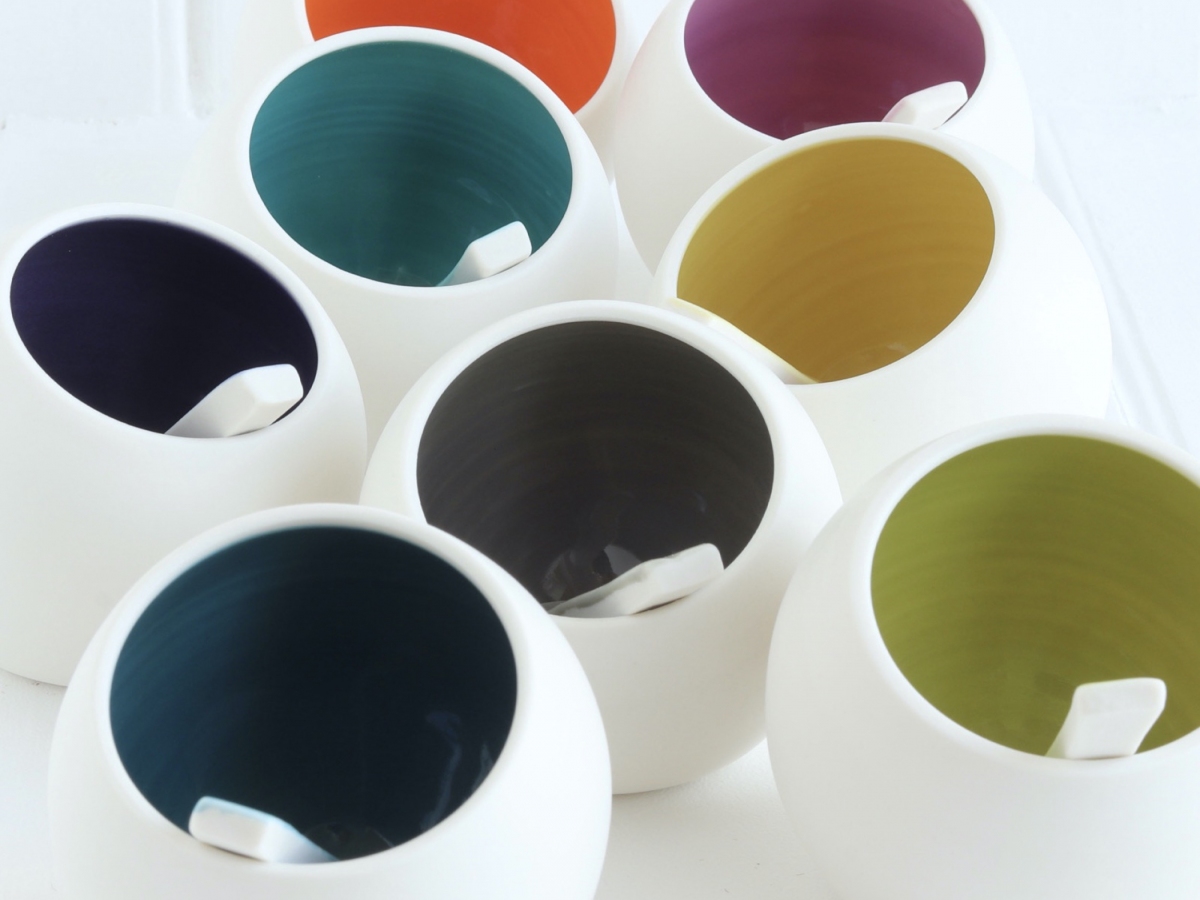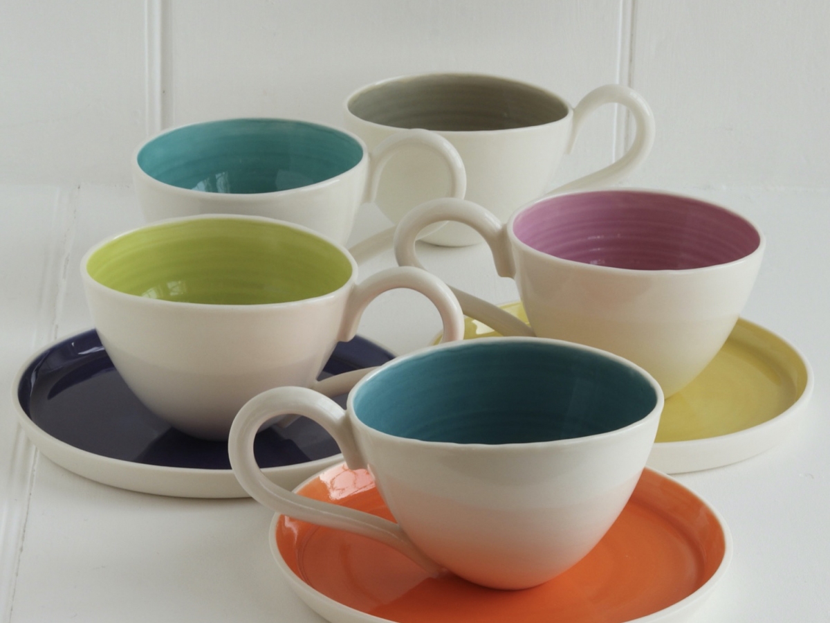 Pottery studio producing small batch collections of wheel thrown porcelain tableware in a range of colourful glazes; specialising in contemporary take on the traditional harlequin tea sets.