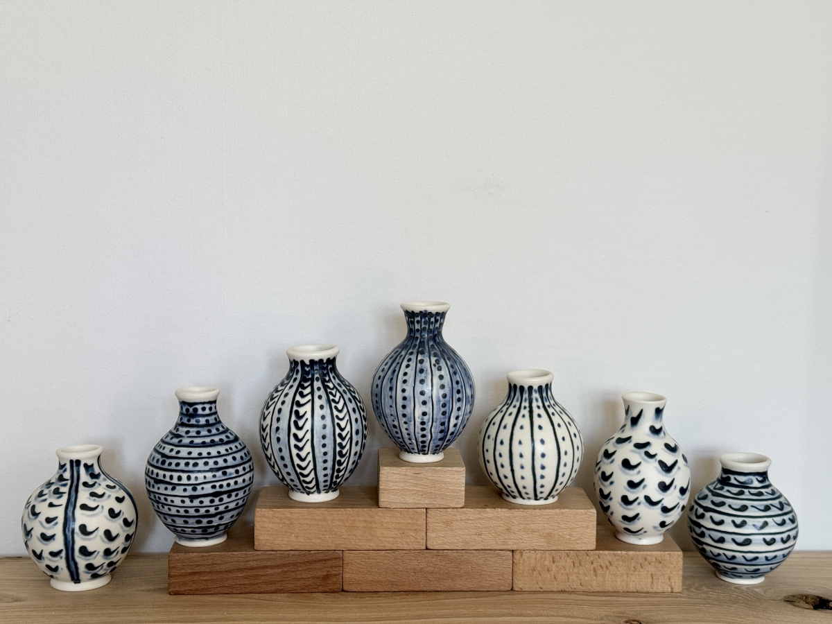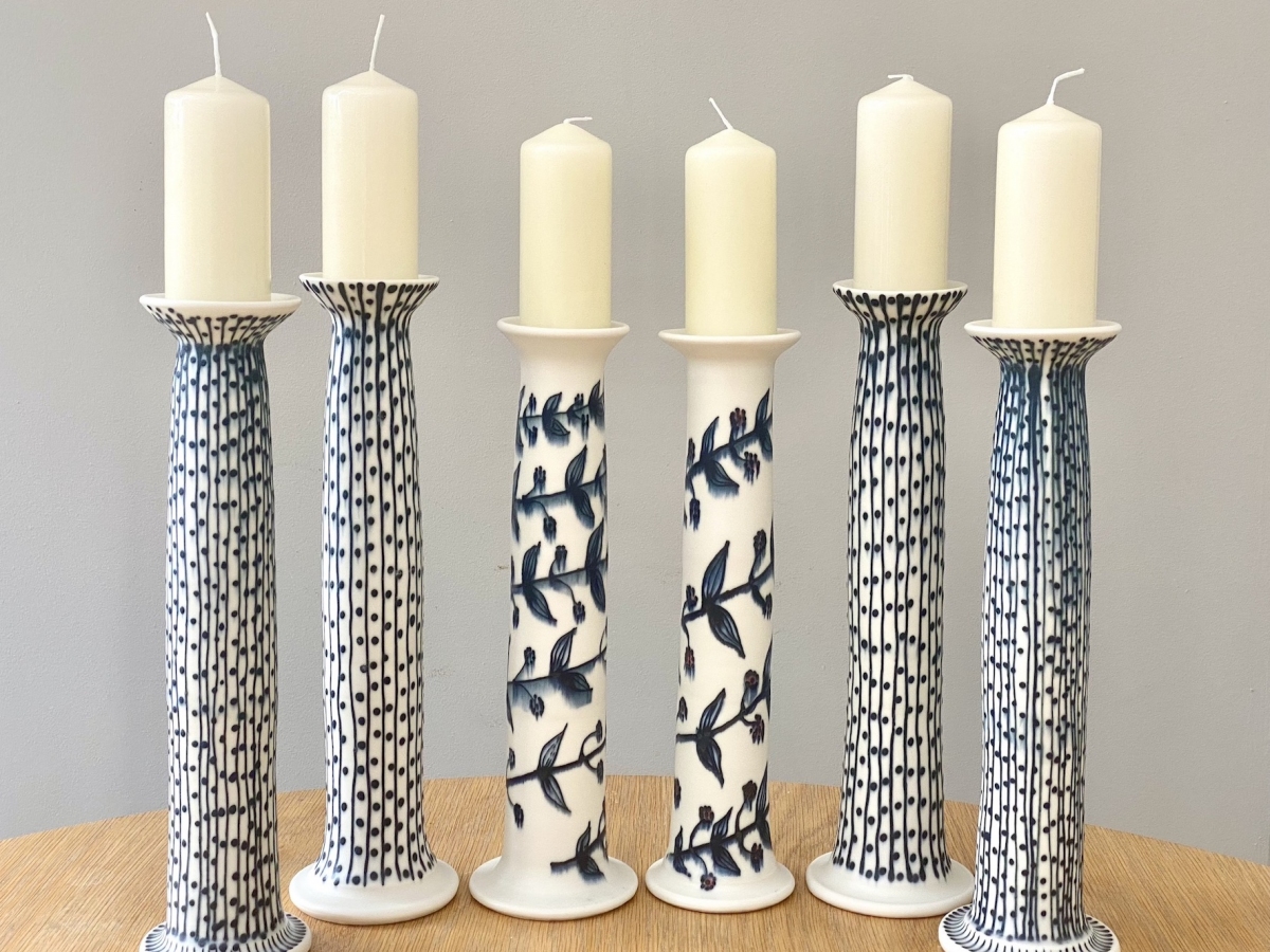 I hand paint the surface of my work with a mixture of underglaze colours and slip.