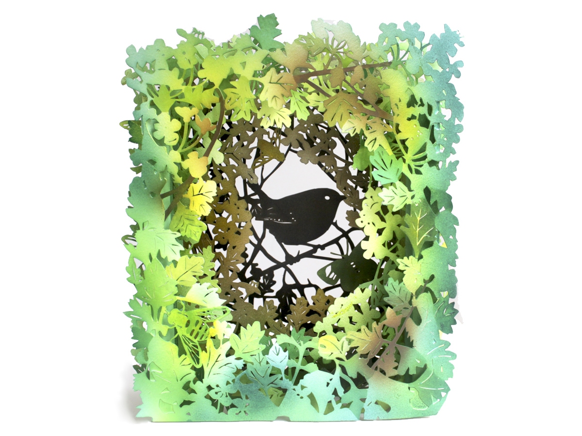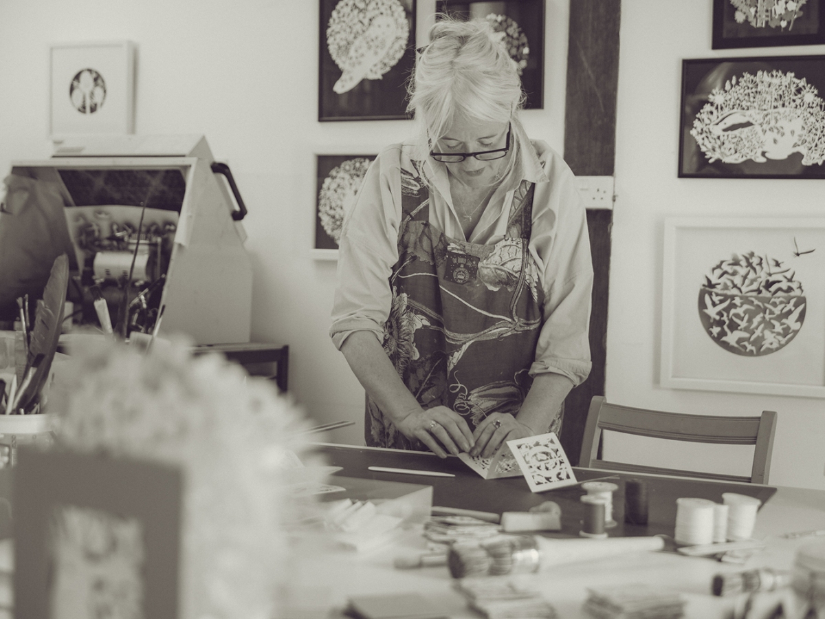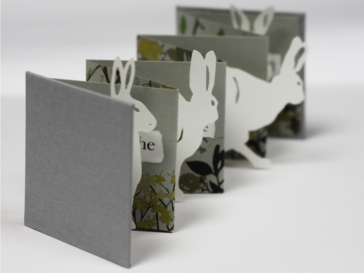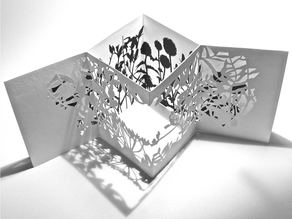 For the last fifteen years I have practised as an artist, making books and works in cut paper, work that ranges from unique sculptural books to limited and unlimited editions, multiples and wall-hung pieces. My work combines all sorts of processes, including stitching, bookbinding, hand painting, printing and hand and machine cutting. I love working on commissions and can incorporate favourite text, snippets of poetry or songs in client work as well as my trademark plant and animal imagery. For more about commissioning my work please see my website.