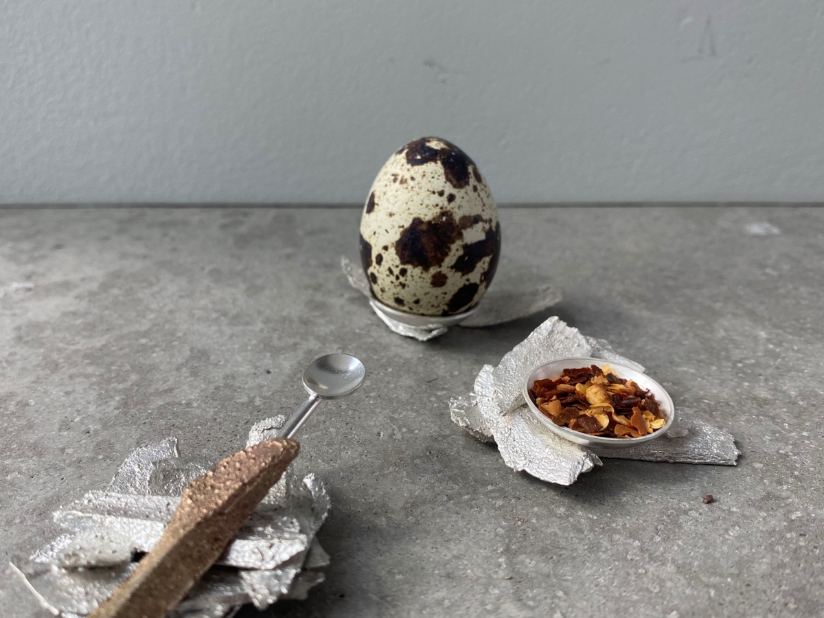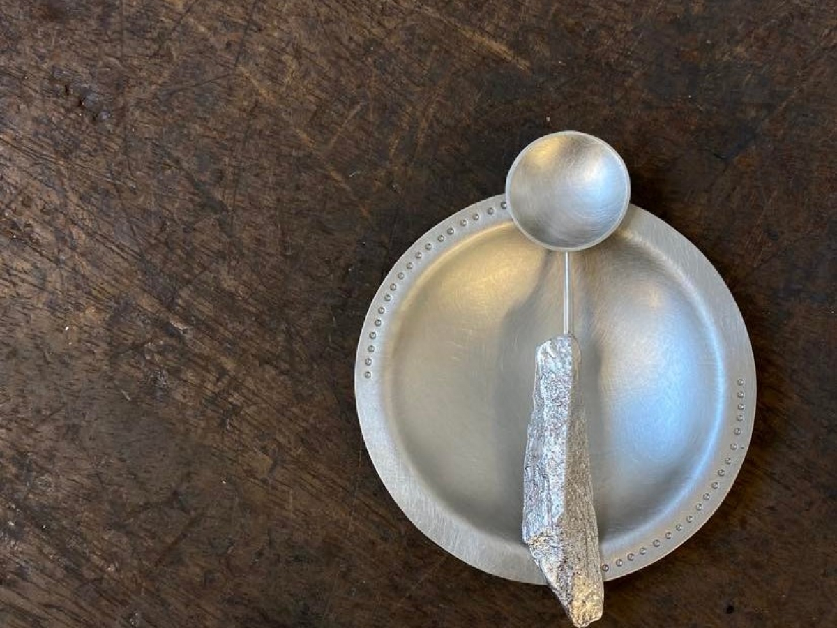 Scott often produces pieces of handheld silverware that sits comfortably on both the dining table and in the wild Scottish landscapes that shaped their designs. Responsiveness to environment and reflective practises have emerged as qualities in Scott’s recent works; a passion for meditative practises that allows for an expansive role for materials, instinctive making and spontaneous responses.