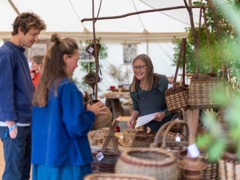 Including workshops from New Brewery Arts, Gloucestershire Guild, Unit Twelve, and Sue Kaye, Out of the Woods tent of dreamy woodland crafts curated by basket maker Hilary Burns MBE, Children Crafts with Pom Stitch Tassel, Fun Rubbish Portraits Installation from Lucie Sheridan, Yoga in the Park with Pretzel Studio, and so much more.