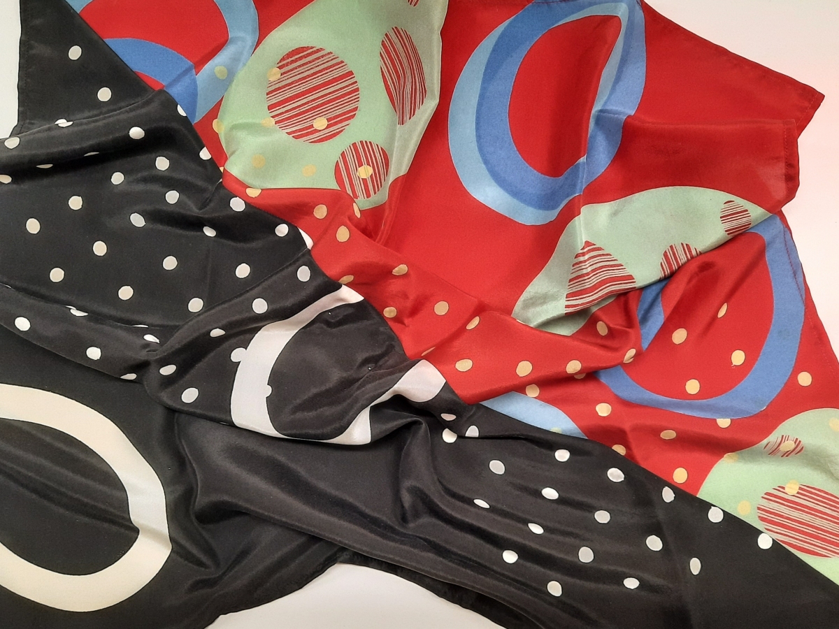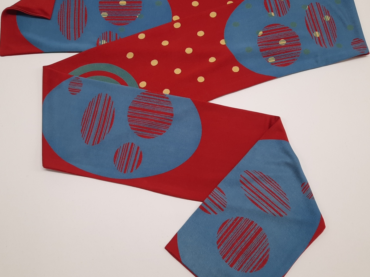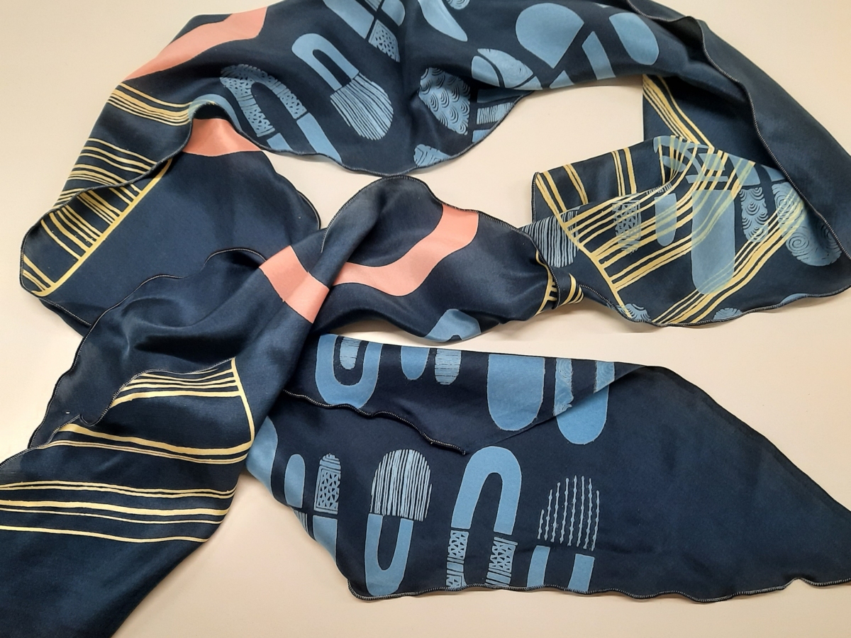 A printed textile studio producing lengths of hand dyed and hand printed natural fabrics using the discharge method of printing which are then made up into a collection of fashion accessories and limited edition garments.