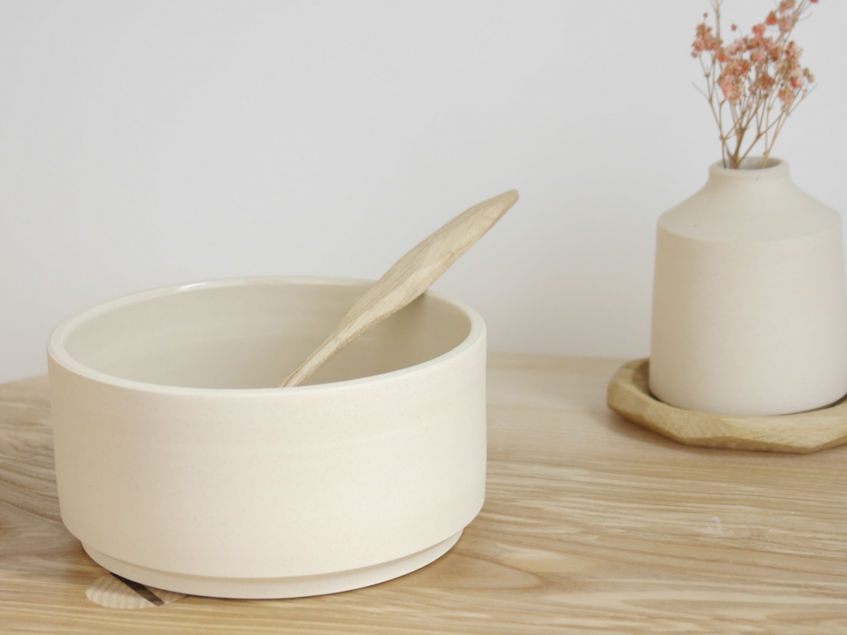 We create pieces that are simplistic in form with clean lines and purposeful details. To create our neutral colour palette we work with different clays as well as using stains to colour the clay body. The exterior of our pieces are unglazed to leave a beautiful tactile finish.